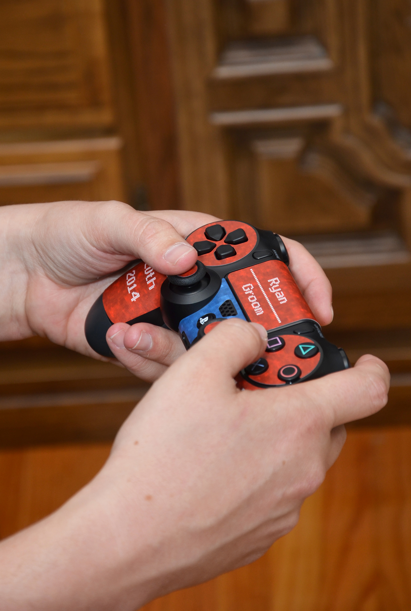 /Ryan (far right) gaming on his wedding day last month with his groomsmen