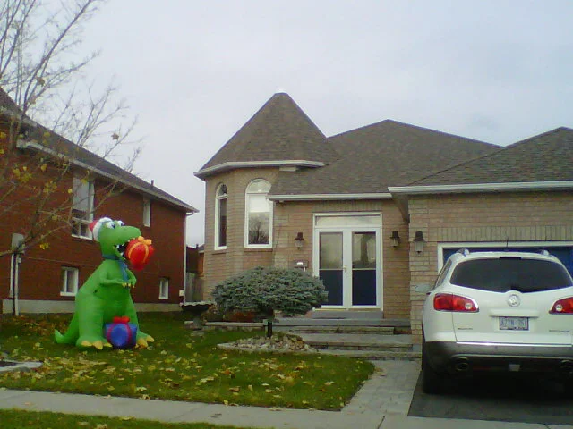 November 10, 2014 The T-Rex Of Glenforest Is In The Christmas Spirit November 10, 2014/ PTBOCANADA The leaves are still falling, but who's to argue with a happy T-Rex with a present in its mouth? We spotted this dude on Glenforest Blvd... Tip us at tips@ptbocanada.com. Follow us on Twitter, Pinterest and Instagram, and Like us on Facebook.