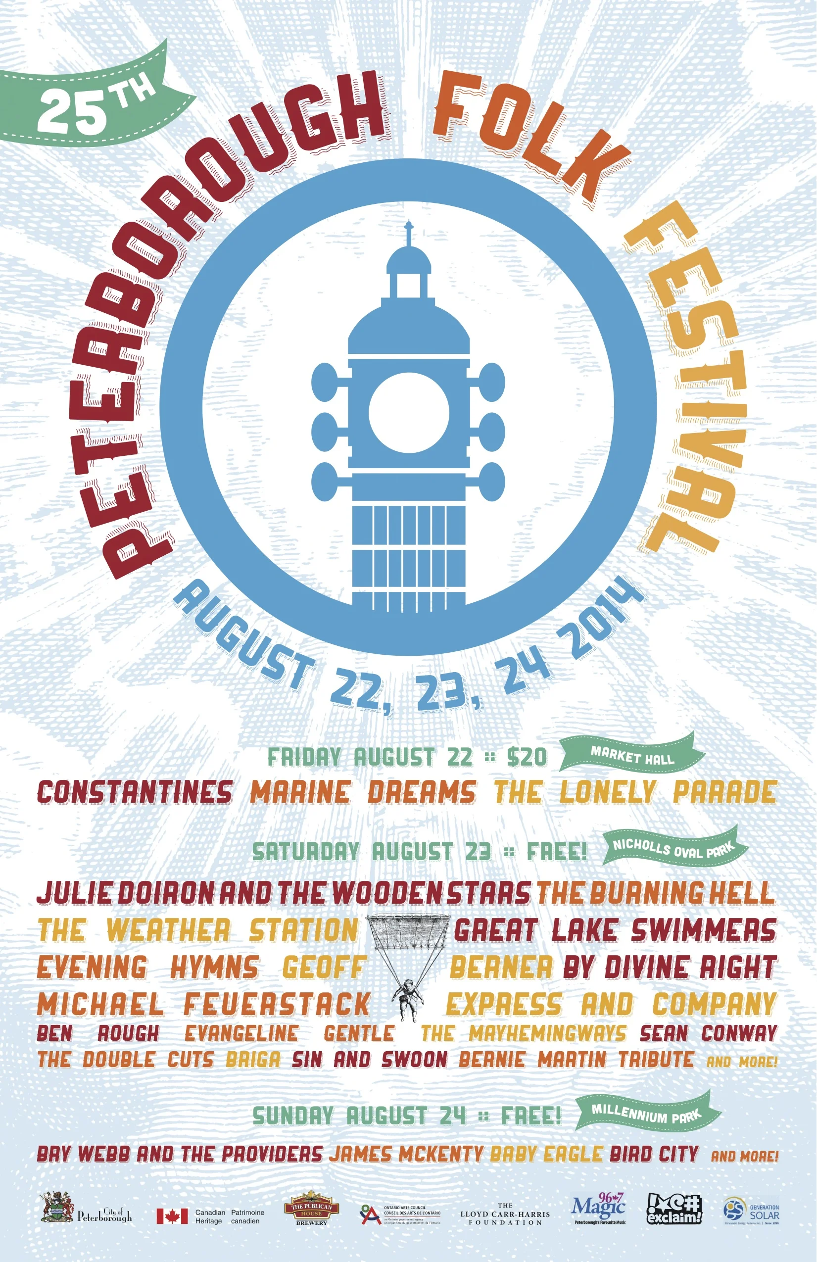 /This year's Peterborough Folk Festival takes place August 22nd to 24th, and features another stellar lineup. See the poster below for the list of musicians performing, and go to their website for more deets on locations, bands and times.