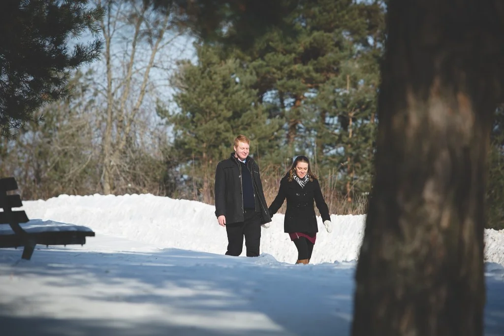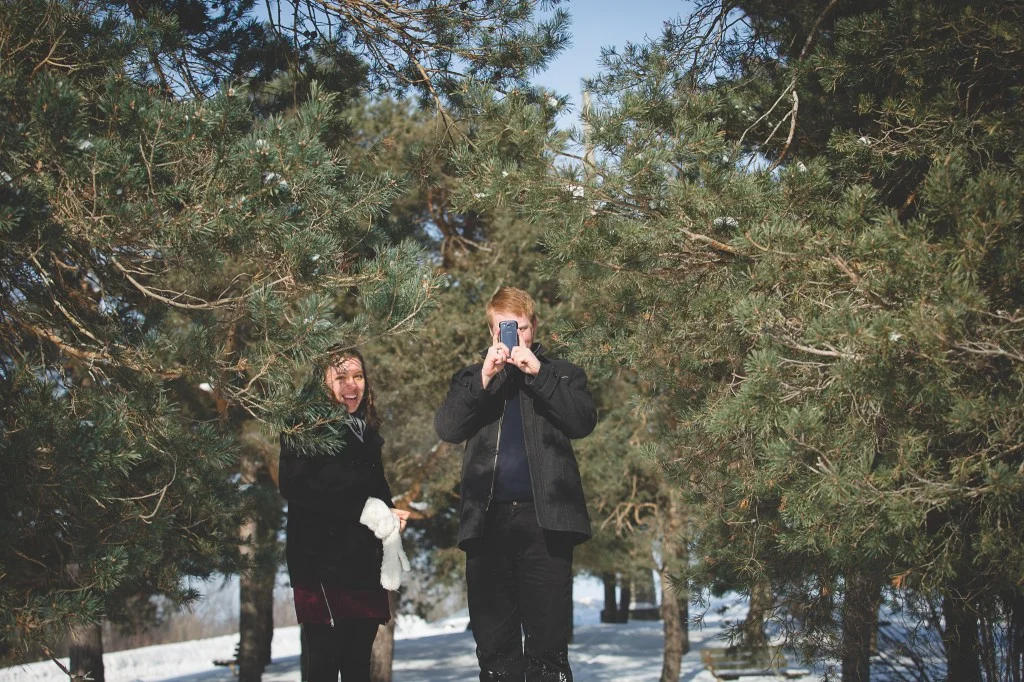 Chance Faulkner just might be one of the most creative photographers on the planet for finding hiding spots to capture engagement proposals. Last November, he hid in a trash can to capture a proposal at the Riverview Park & Zoo in photos that went viral around the world. And on Friday, February 13th, on a frigid day, he hid under a white sheet draped artfully in the snow to capture an outdoor proposal from Matt to Jody at the Peterborough Archives. Here are the photos Chance took, and his amazing hiding spot...