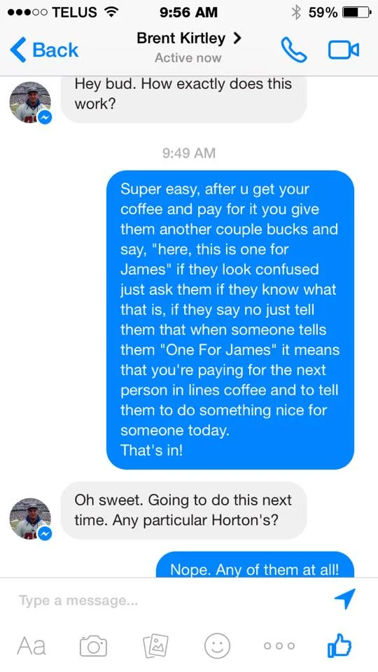 People are already buying #OneForJames at coffee shops all around Ontario and Canada, as the movement is quickly picking up steam and going viral.
