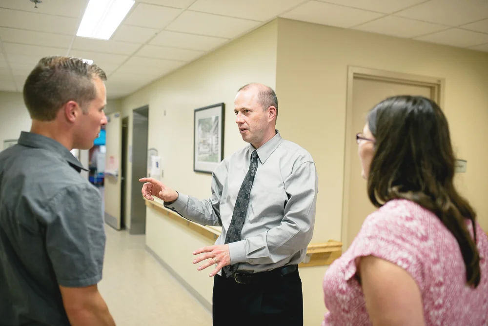 Patrick Gillespie, the CEO at St. Joseph's at Fleming, talks to visitors and staff about various aspects of the Home