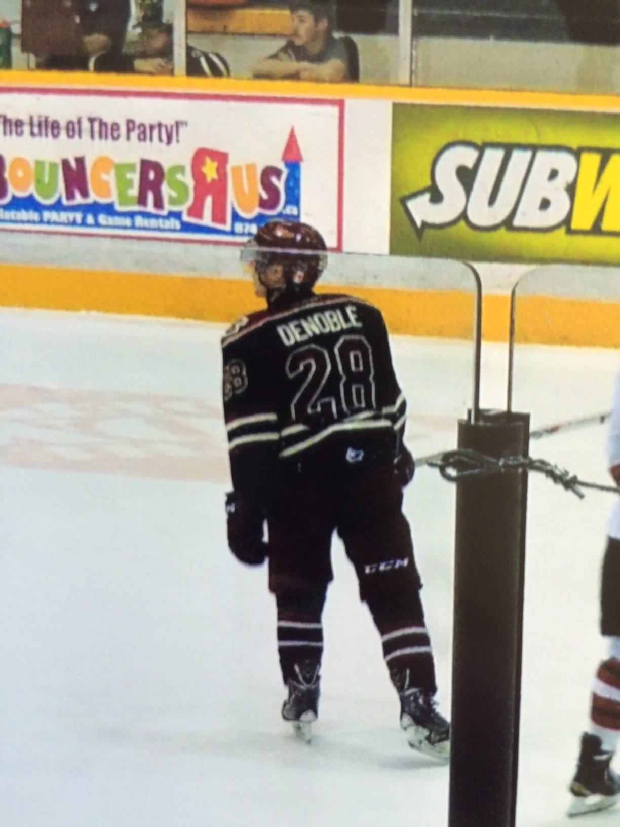 Drafted in 2013, in the 13th round, and wearing jersey No. 28—which he wore in minor hockey—Logan DeNoble grew up in Peterborough being a huge Petes fan. He was developed in the minor league hockey system right here in Peterborough.
