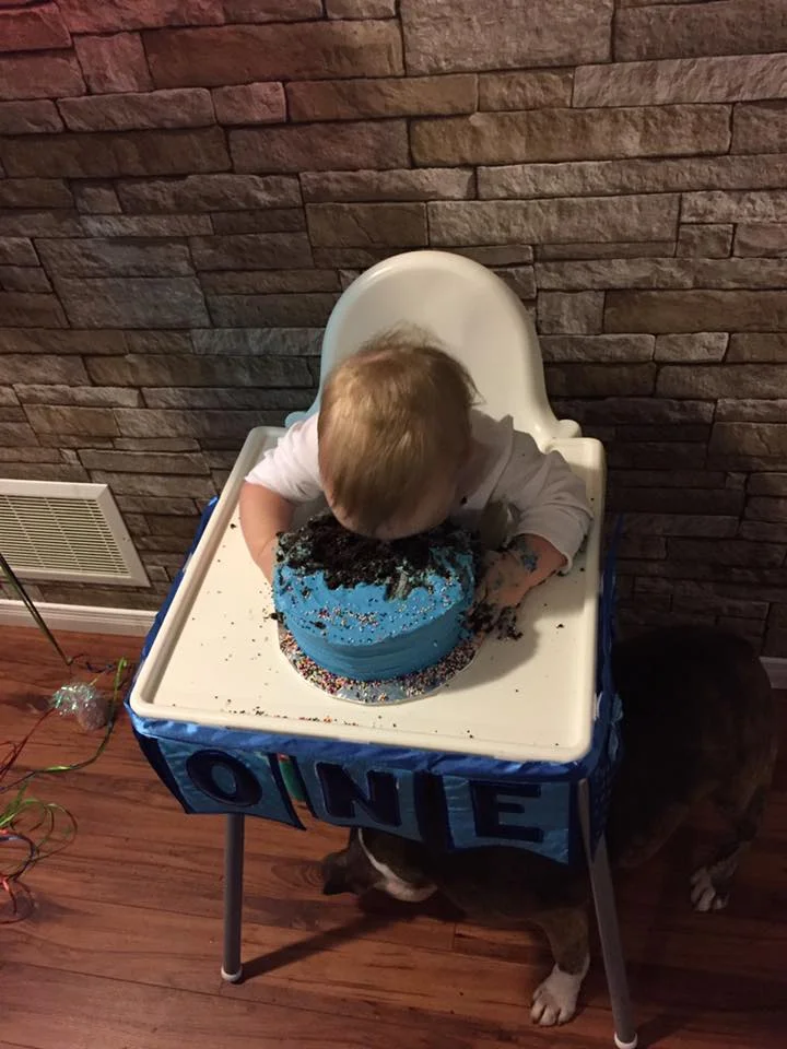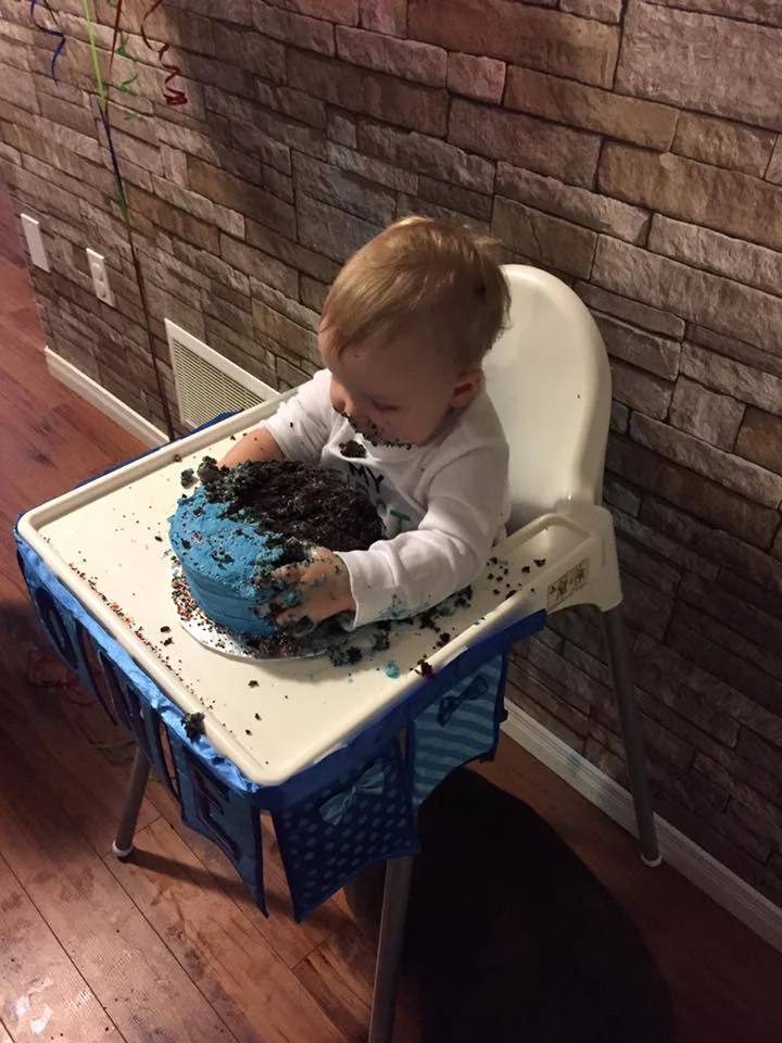 The party was a huge success, but the highlight was baby Oliver inhaling his very first birthday cake. Look at these awesome photos, starting with his epic face-plants into the chocolate cake...