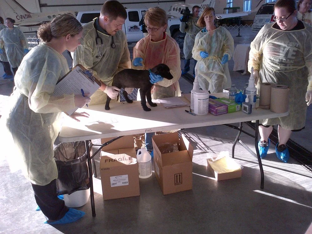 In what was an amazing collaboration among many organizations, in early October a plane carrying 59 community dogs in search of new homes arrived at the Peterborough Airport from Big Trout Lake First Nation in an effort to help address the pet overpopulation concerns in that community. Upon arrival at the airport, the dogs were triaged by a team of volunteers from across the province, including veterinarians and veterinarian technicians.