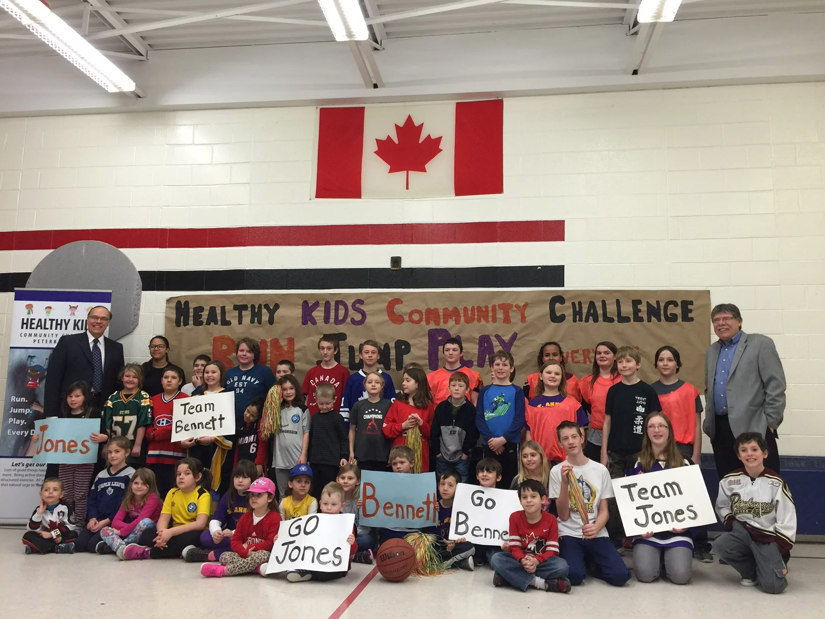 /Mayor Daryl Bennett and Warden J. Murray Jones squared off on the basketball court of Highland Heights Public School on Thursday morning (February 10th) for a friendly “shoot-off” to officially launch the Healthy Kids Community Challenge for the Peterborough area.