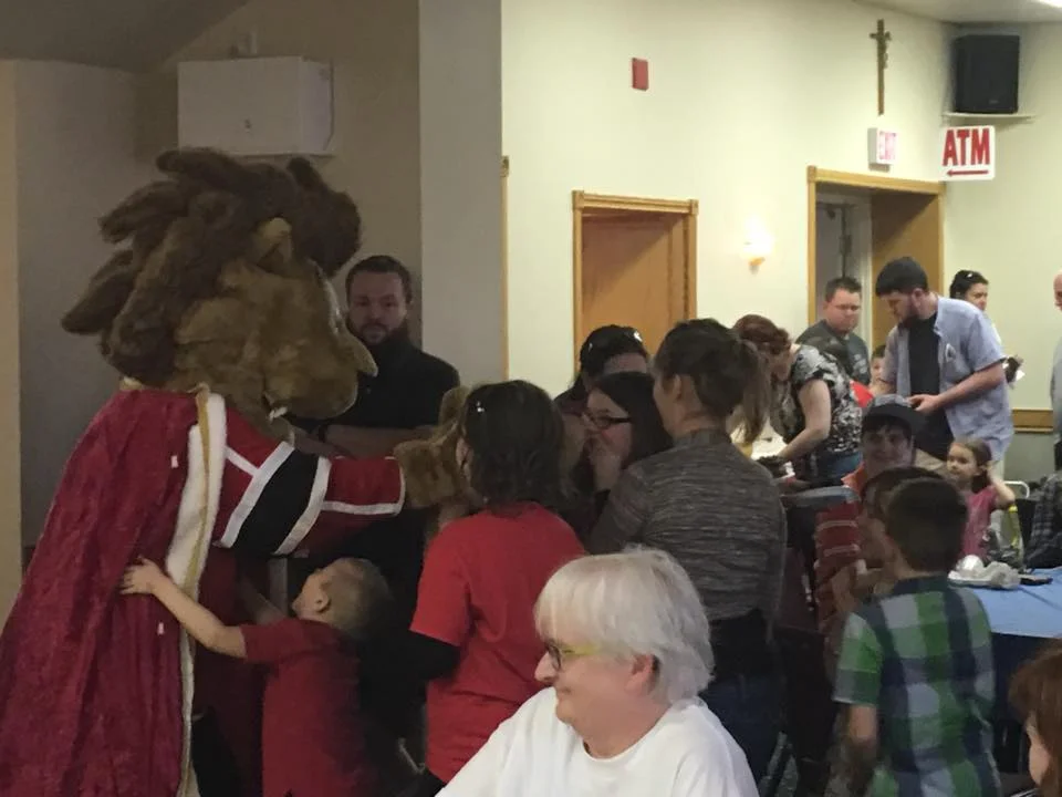 At the 3rd Annual Peterborough Huskies banquet that took place Saturday night (Aprll 16th) at Knights of Columbus, one of the highlights was when King George—the popular mascot for downtown Peterborough—surprised the kids by crashing the banquet.