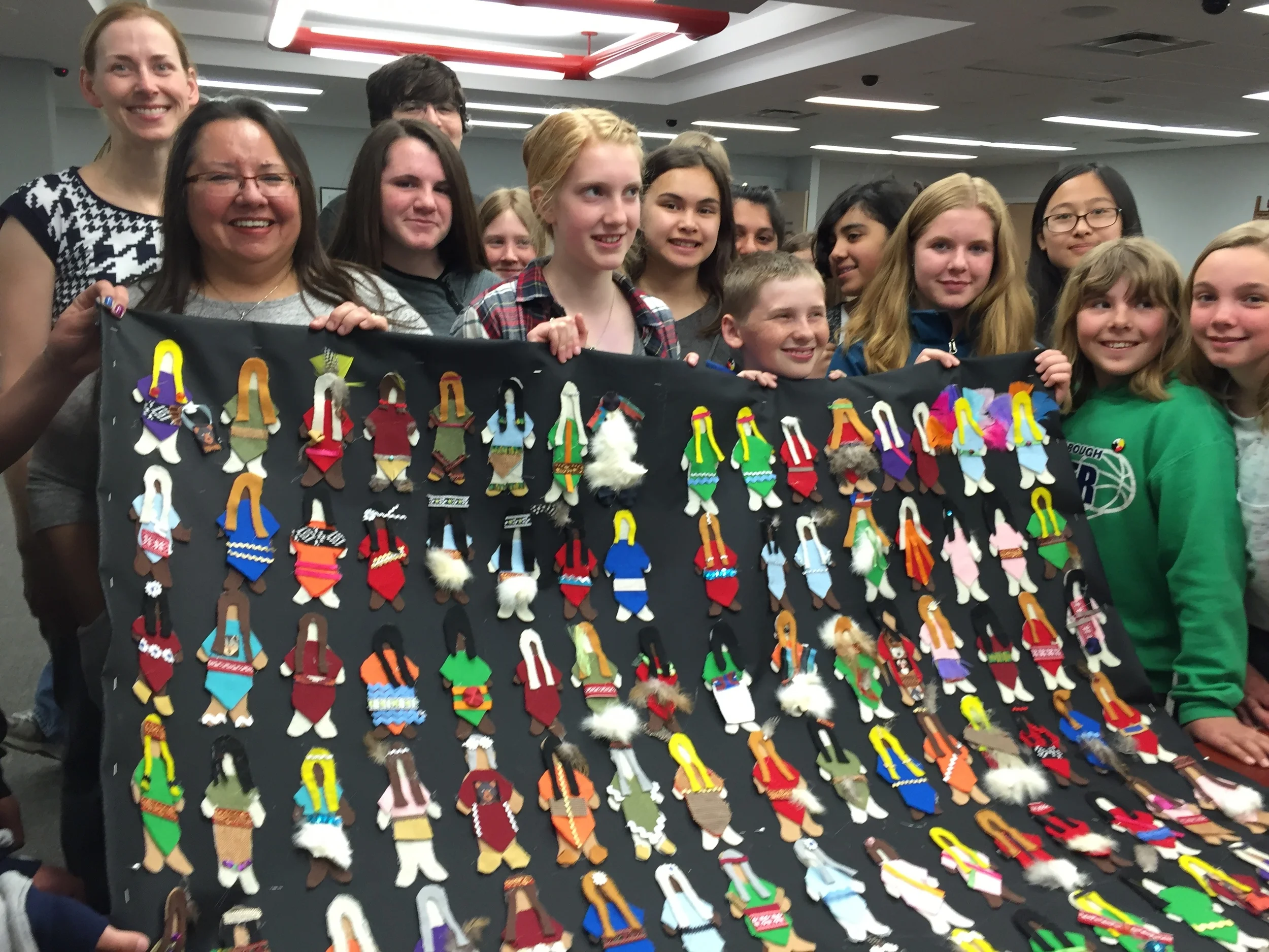 The students heard first-hand accounts about the issues from members of Curve Lake First Nation before taking part in the Faceless Doll Project, crafting hundreds of felt dolls to represent those voiceless missing and murdered women. The dolls will be attached to banners that can travel from school to school.