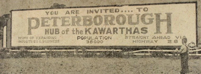 /We discovered this cute old newspaper insert from the early Fifties archived at the Canoe Museum touting the benefits of doing business in Peterborough...