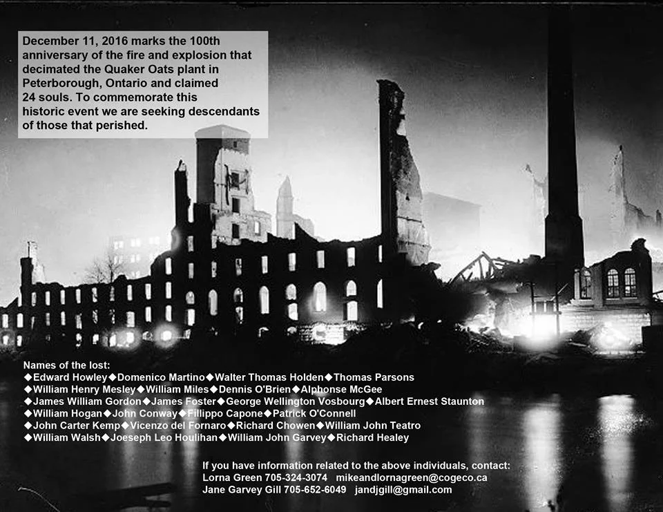 Twenty-four workers died when a fire and explosion decimated Peterborough’s Quaker Oats plant on December 11th, 1916.