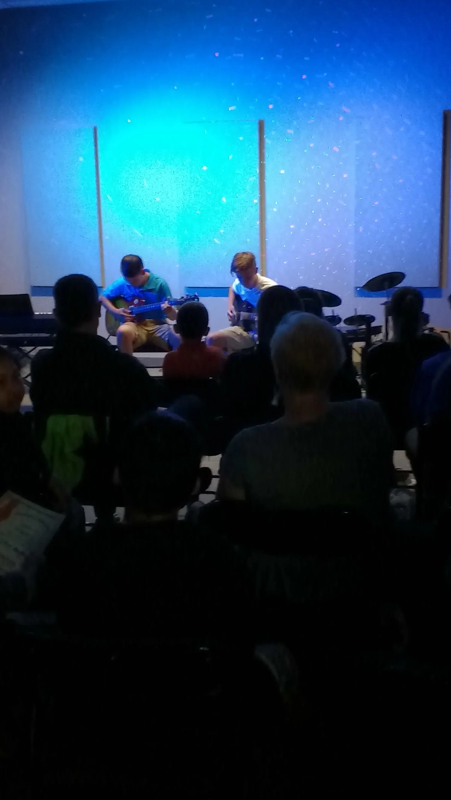 Two of Ben Foss' guitar students, Adam and Eli, play a duet at the 2016 Spring Recital