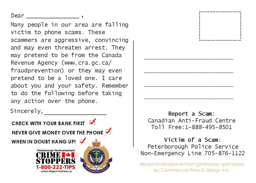 Peterborough Police Services Launch Postcard Campaign To Spread Fraud Prevention