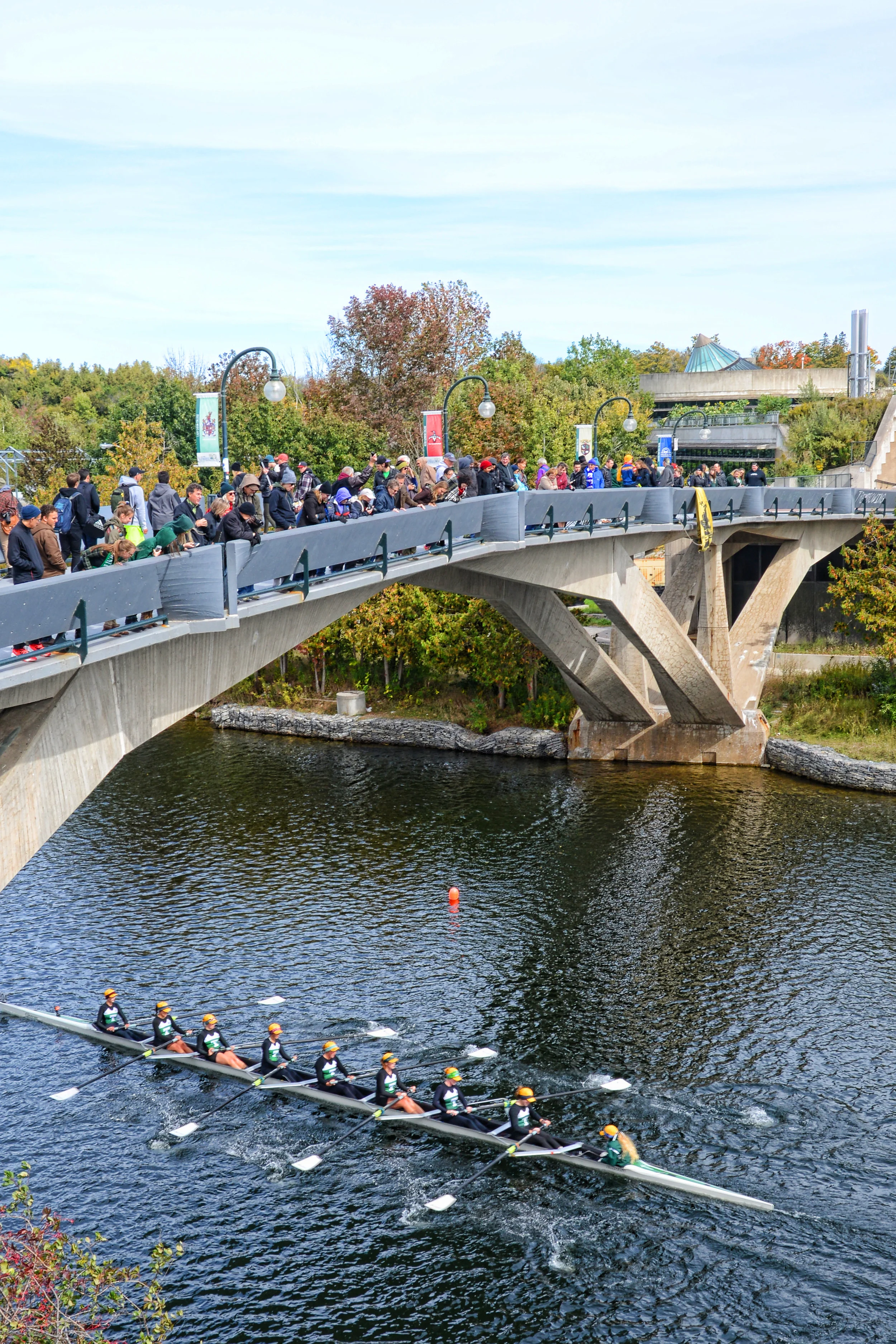 Created in 1971 by Trent alumnus Chris Leach ‘70, today Head of the Trent includes over 1,200 athletes from more than 50 universities and clubs across Canada and the northern United States, and is also known as Trent’s official homecoming celebration. Races take place on the Trent-Severn Waterway, starting at the Parkhill Road Bridge and winding through the Trent Canal to finish at the Faryon Bridge on Trent’s campus.