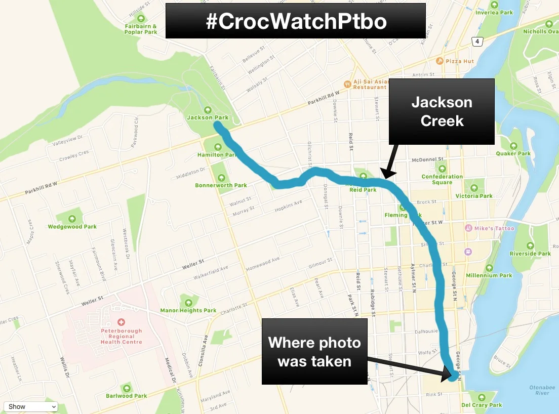 /UPDATE: There is no crocodile in Jackson Creek. Happy April Fool's Day all!!