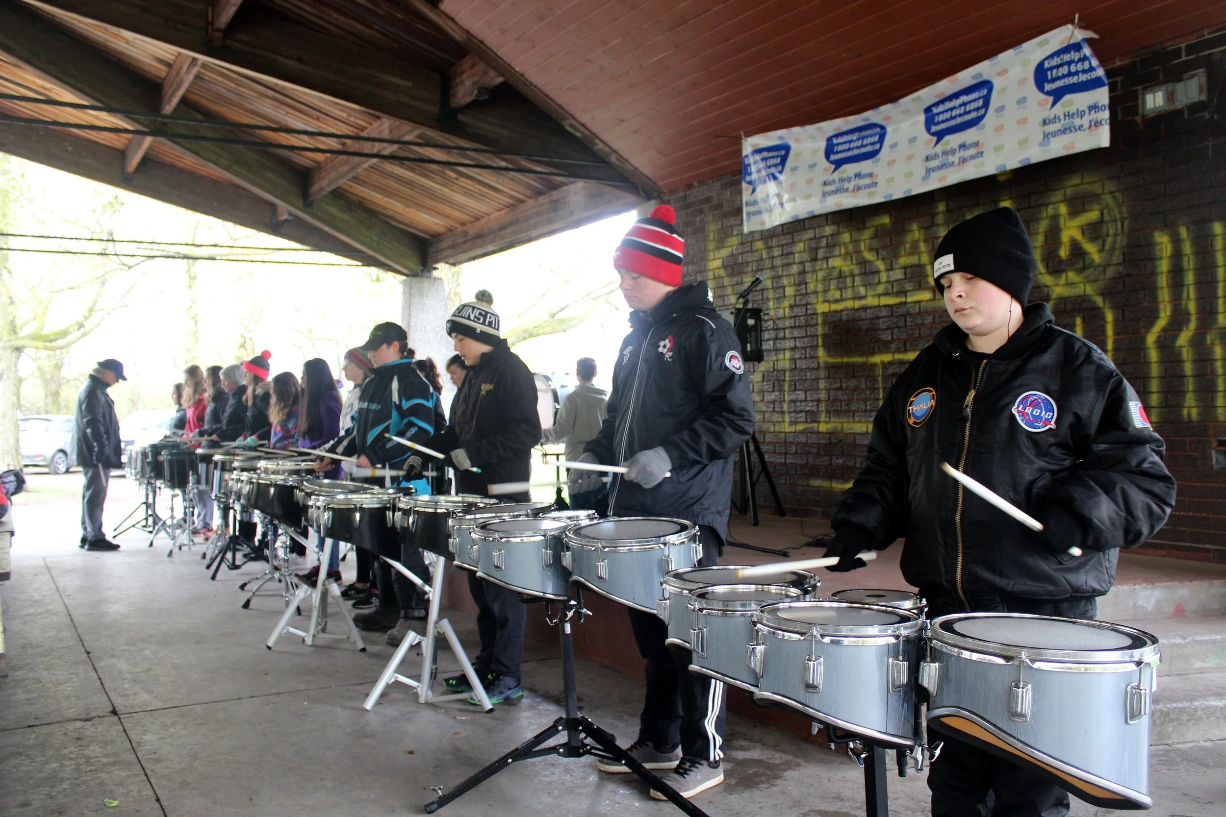 The James Strath PS Drumline hypes up the walkers. (Photo by Daniel Sky Morris)