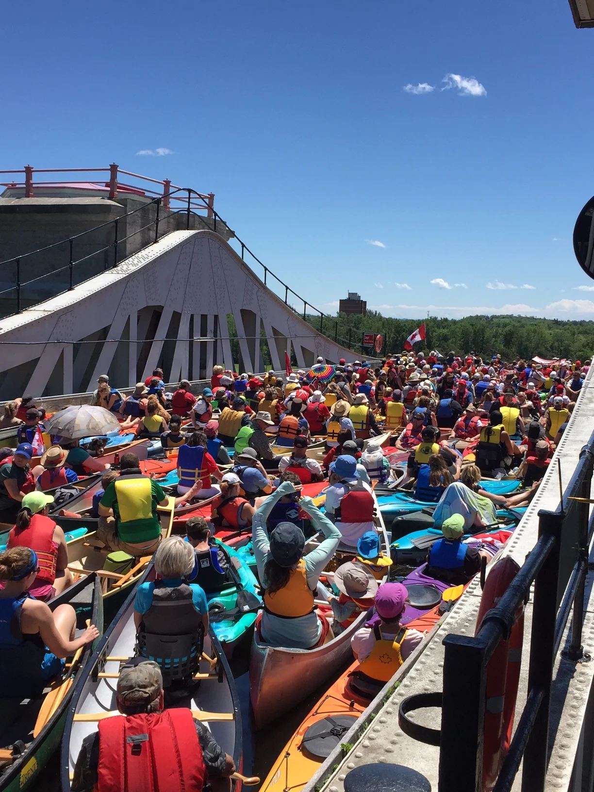 This year, Lock 'N Paddle upped their game even more, filling both tubs on a beautiful Saturday (June 24th) with more than 150 canoes and kayaks each (to mark Canada's 150 birthday) and lifting them 65 feet.