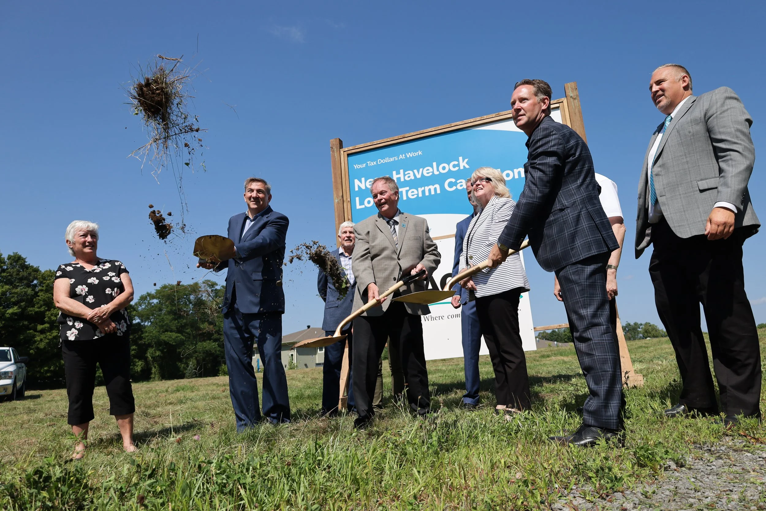 /The shovels dug deep for AON Inc. as they started the groundbreaking ceremony for a 128-bed long-term care home in Havelock on Wednesday morning.