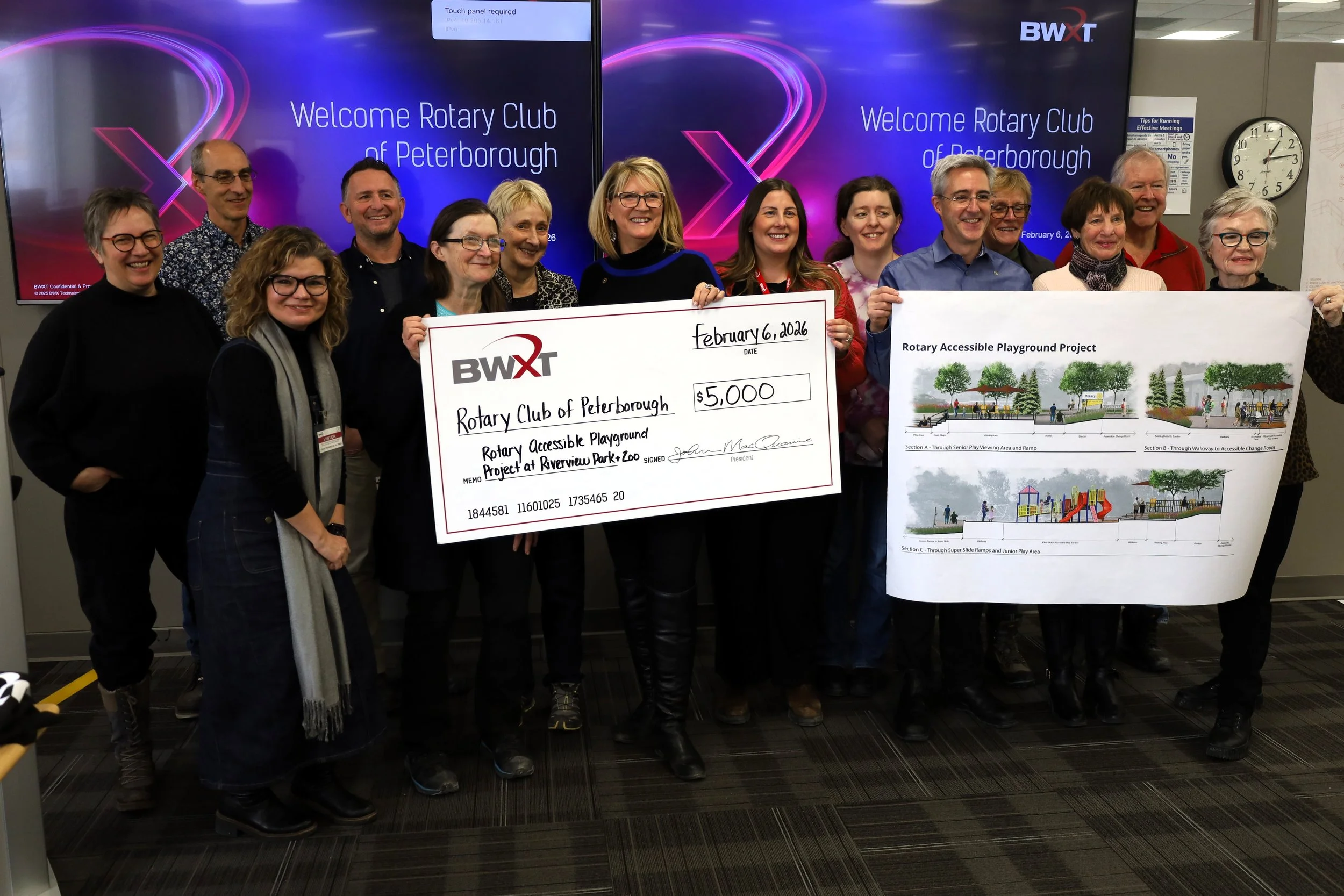 /The Rotary Club of Peterborough’s Accessible Playground Project is $5,000 closer to its $1.5 million goal, as BWXT Nuclear Energy Canada (BWXT) donated $5,000 at its facility on Friday afternoon.