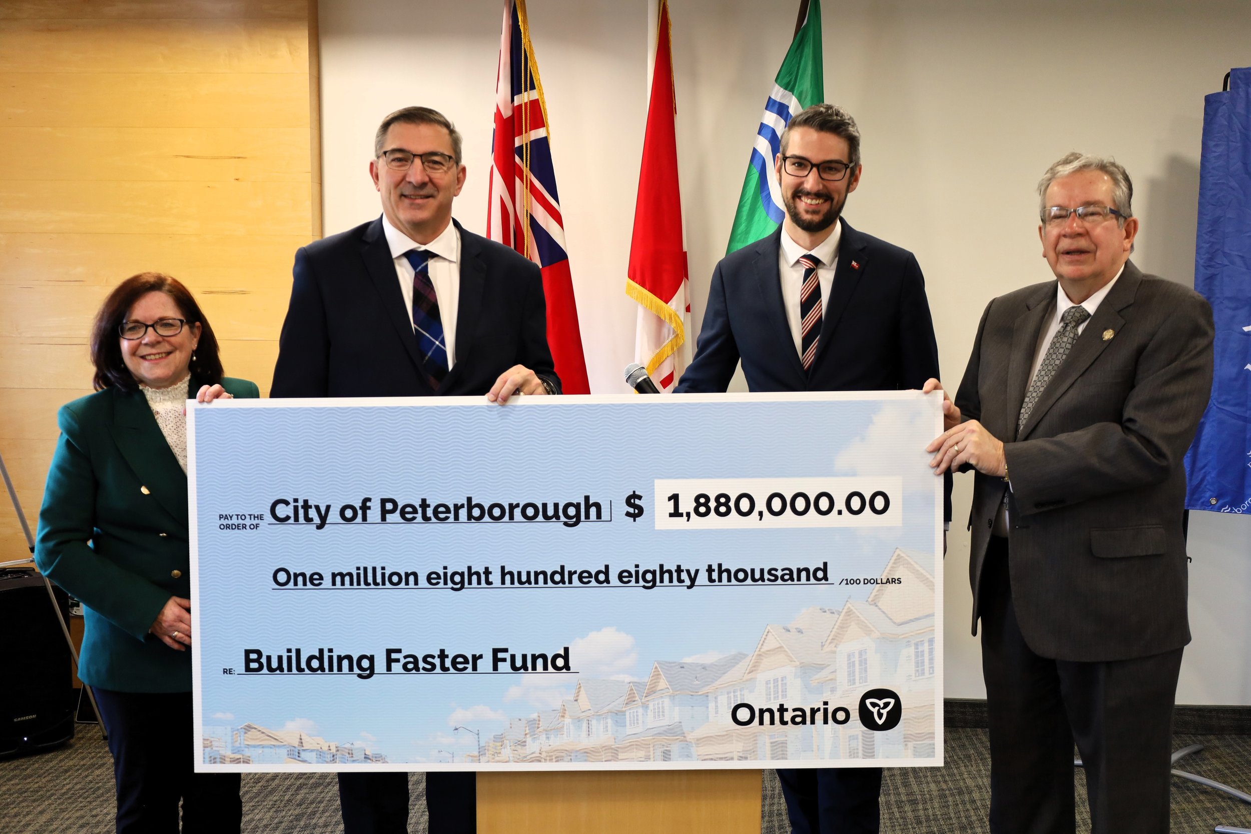 /After Peterborough exceeded its 2023 housing target and broke ground on 506 new housing units last year, the provincial government rewarded the City with $1,880,000 through the Building Faster Fund, announced at City Hall on Monday morning.
