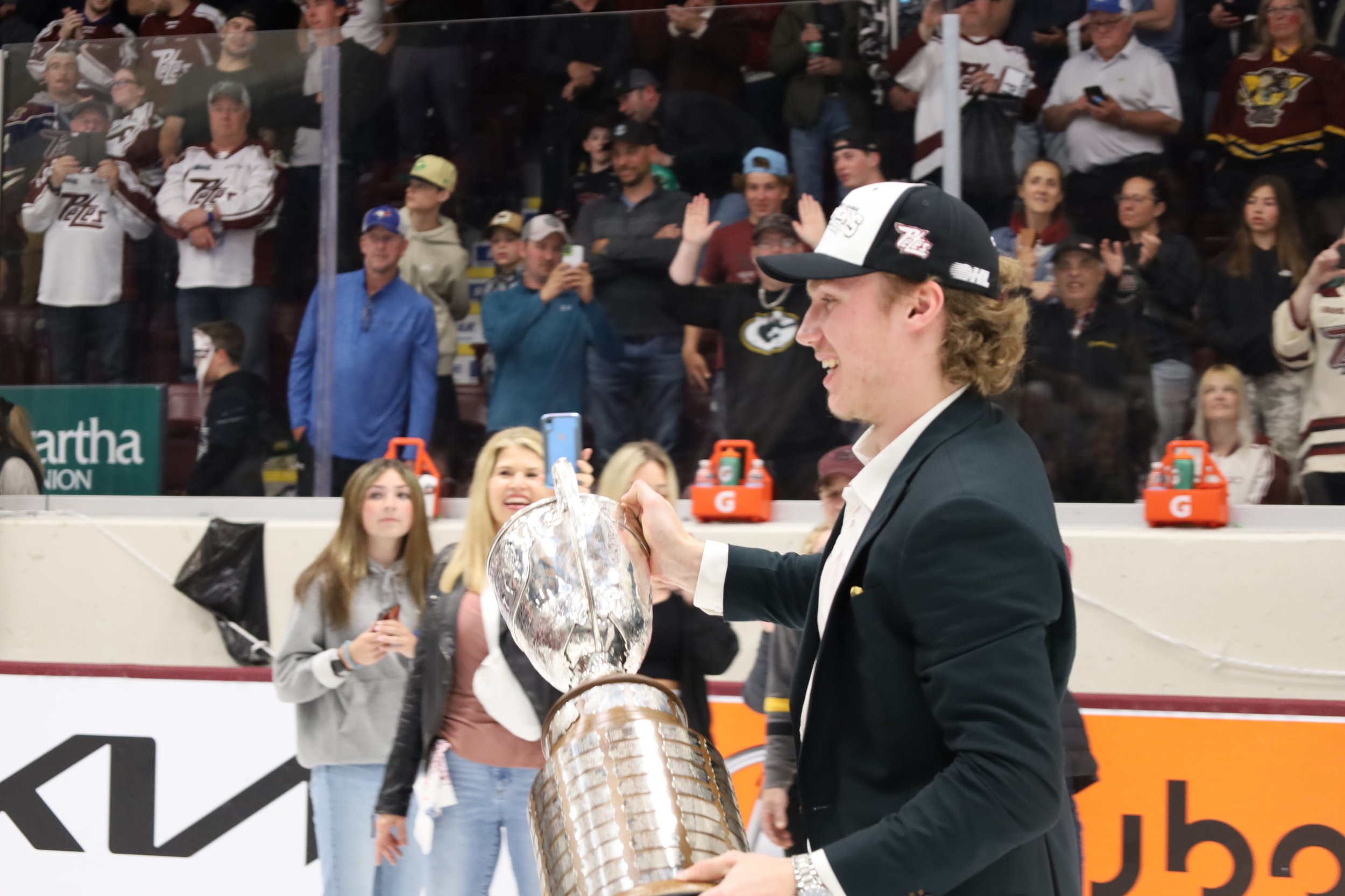 Beck winning the OHL Championship with the Petes during the 2022/23 OHL season. Photo by Samantha Bianco.