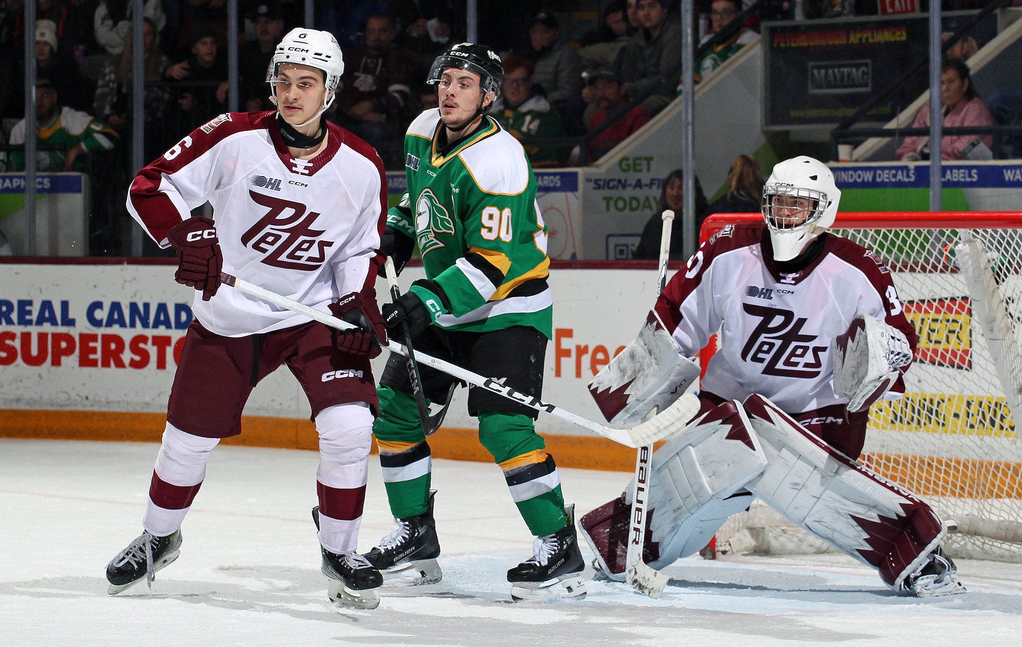 The league-leading Knights had a 15-game winning streak entering the game. On Jan. 26, goaltender Easton Rye got his first career win against London in a 3-2 shootout victory to stop their 14-game winning streak. He had the start again for Peterborough.