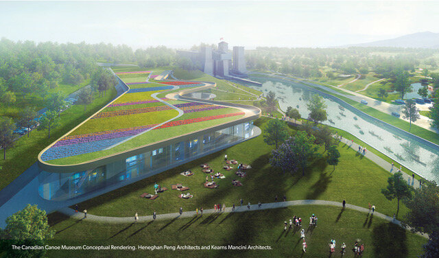 The new museum has been designed by the award-winning team of heneghan peng (Dublin, Ireland) and Kearns Mancini Architects (Toronto, Canada). The building, purpose-built for the world’s largest collection of canoes, kayaks and paddled watercraft, will blend almost seamlessly into its landscape, emerging from the drumlin and complementing the waterway.