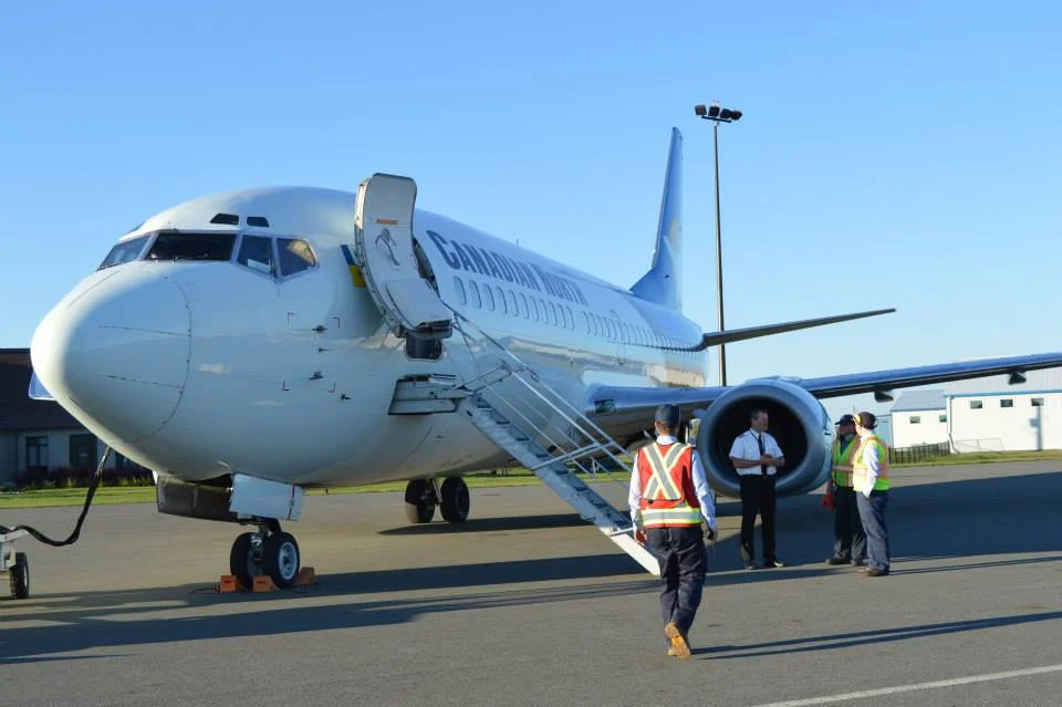 /The first ever Boeing 737 to land at Peterborough Airport took place Wednesday evening (September 24th), as Canadian North airline came to visit the passengers who will be flying the charter leaving the airport October 2nd to New York City organized by travel agency Carlson Wagonlit Travel. Here's some pictures of history in the making at an airport where the sky is the limit...