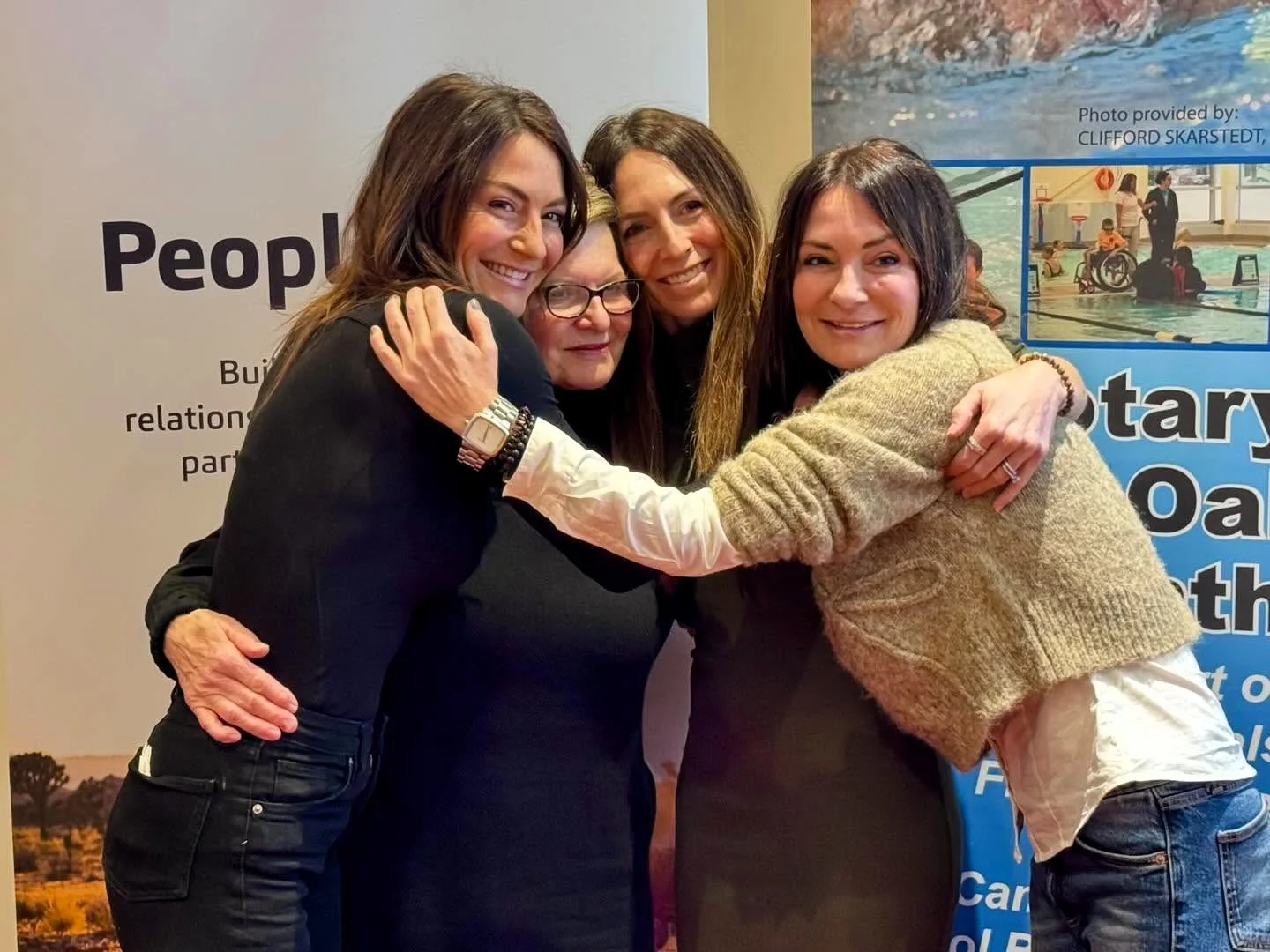 Vanessa Oake Hogan (left) with her sister Renée Oake shortly after the latter did 146 laps in the swimming lane. Photo by David Tuan Bui.