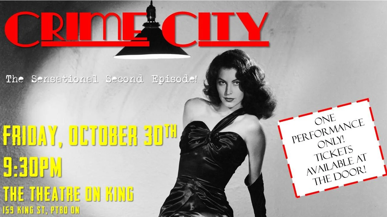 /Head to The Theatre on King (159 King Street) on Friday, October 30th at 9:30 p.m. to catch the latest episode—Diamonds Are A Girl's Best Fiend!—of Crime City, a stage show in the style of old-time radio detective shows.