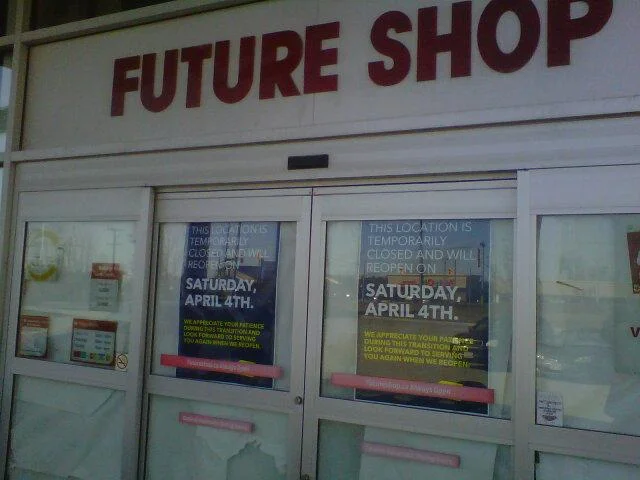 /All Future Shops are closing across Canada, consolidating under the Best Buy brand (Future Shop's parent company). The Peterborough store has already closed, with surprised customers showing up on Saturday to the notice on the store doors.