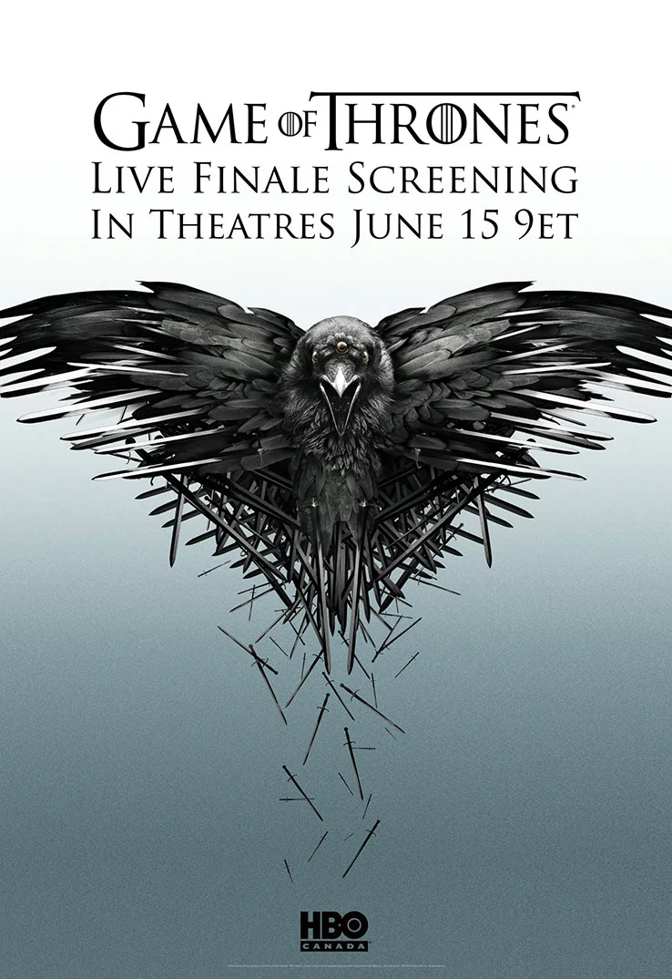The finale airs there Sunday, June 15th show at 9 p.m. The $10 admission for this "fan event" includes a $10 concession voucher, Game of Thrones giveaways and a preview of upcoming programming courtesy of HBO Canada.
