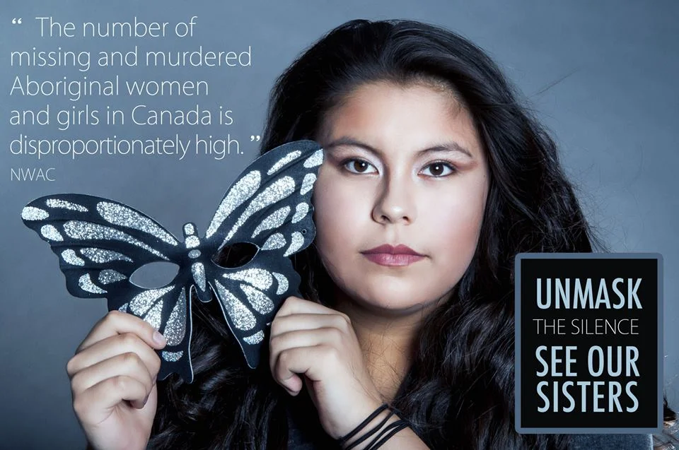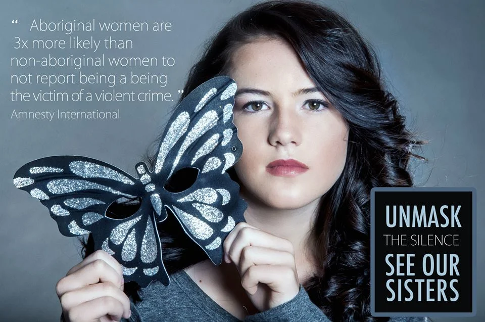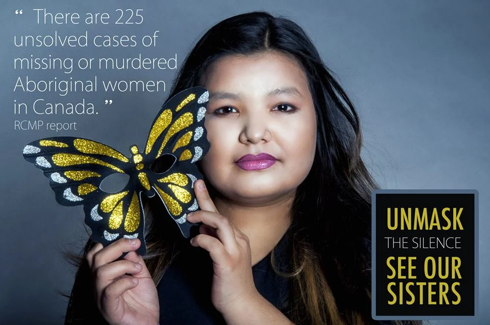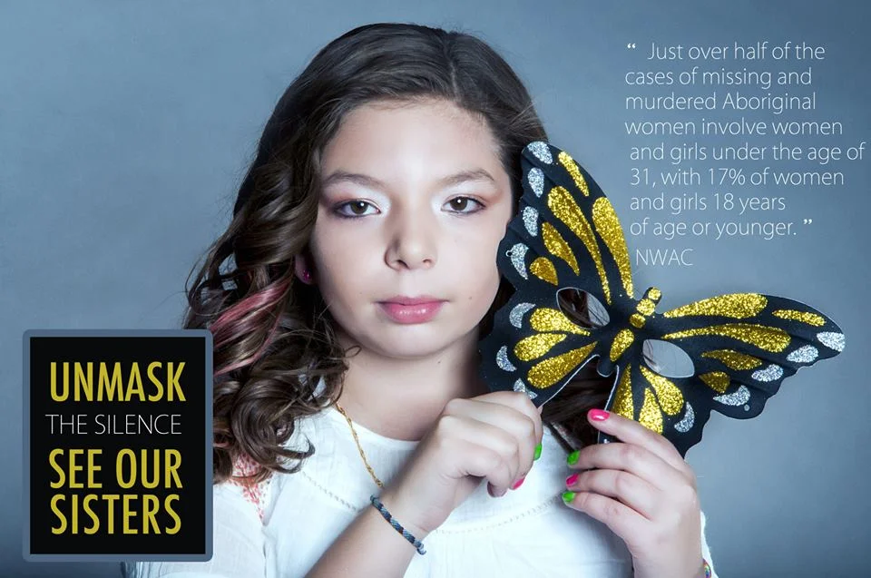 Abbott... "The butterfly is the national symbol behind the struggle to combat this crisis; it represents the individual beauty of each woman that is missing. In our images, the butterfly mask being removed symbolizes the unmasking of the cold hard facts that we all need to face together. We want Canadians to see the plight of these women as though they were our sisters."