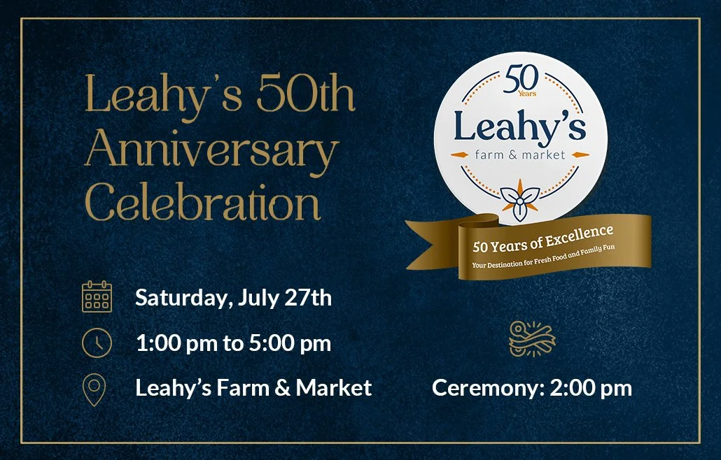 The Leahy family is welcoming the community to their farm to celebrate the 50th anniversary of Leahy’s Farm and Market on July 27 from 1 p.m. to 5 p.m., announced on Wednesday.