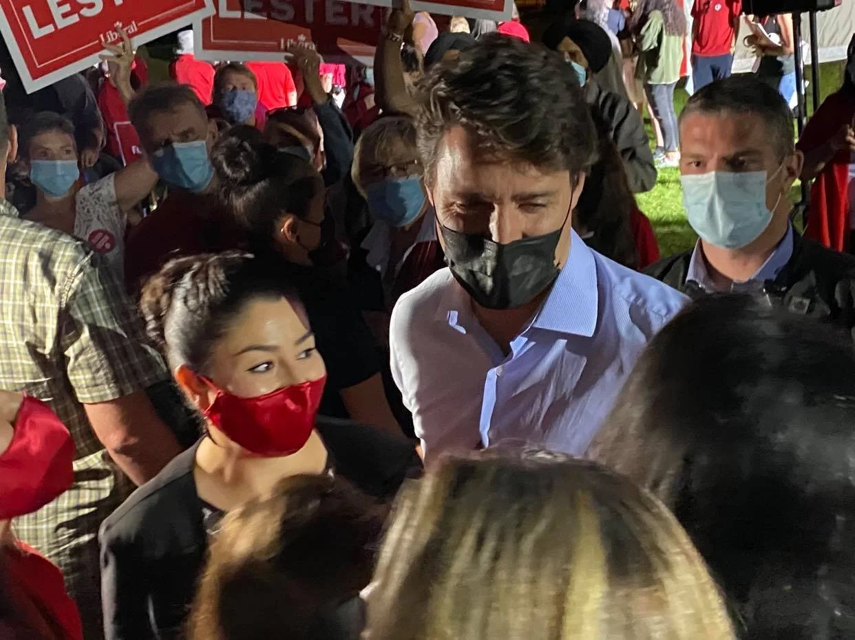 Maryam Monsef, Former Liberal MP (left) and Justin Trudeau, Liberal Prime Minister (right) during his visit to Peterborough during his 2021 Federal Election Campaign at the Peterborough Naval Association. Photo by David Tuan Bui.