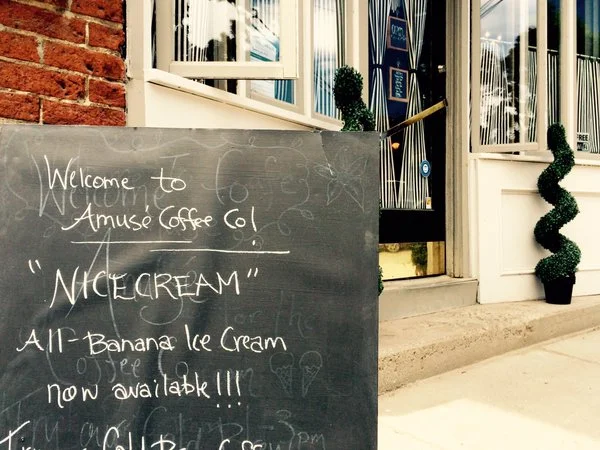 NICEcream is a delicious ice cream made entirely from bananas (no extra ingredients or preservatives are added), and is the signature product from Brooke's new startup Chimp Treats. NICEcream recently launched at Amuse Coffee Co., and people are going bananas for it.