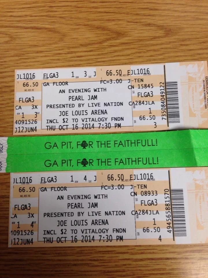 Wristband tickets Ed scored in 2014 for Detroit concert