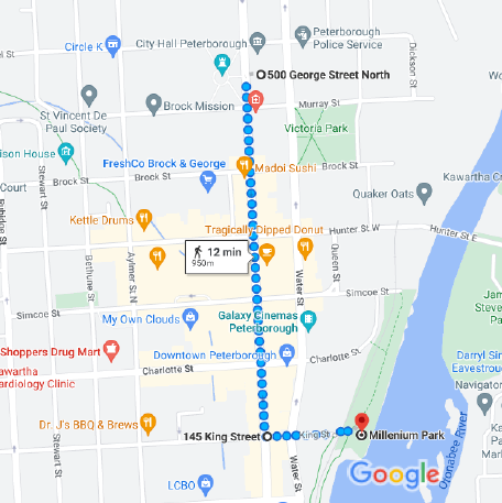 Map of Peterborough Pride March. SCreenshot courtesy of Peterborough Pride.