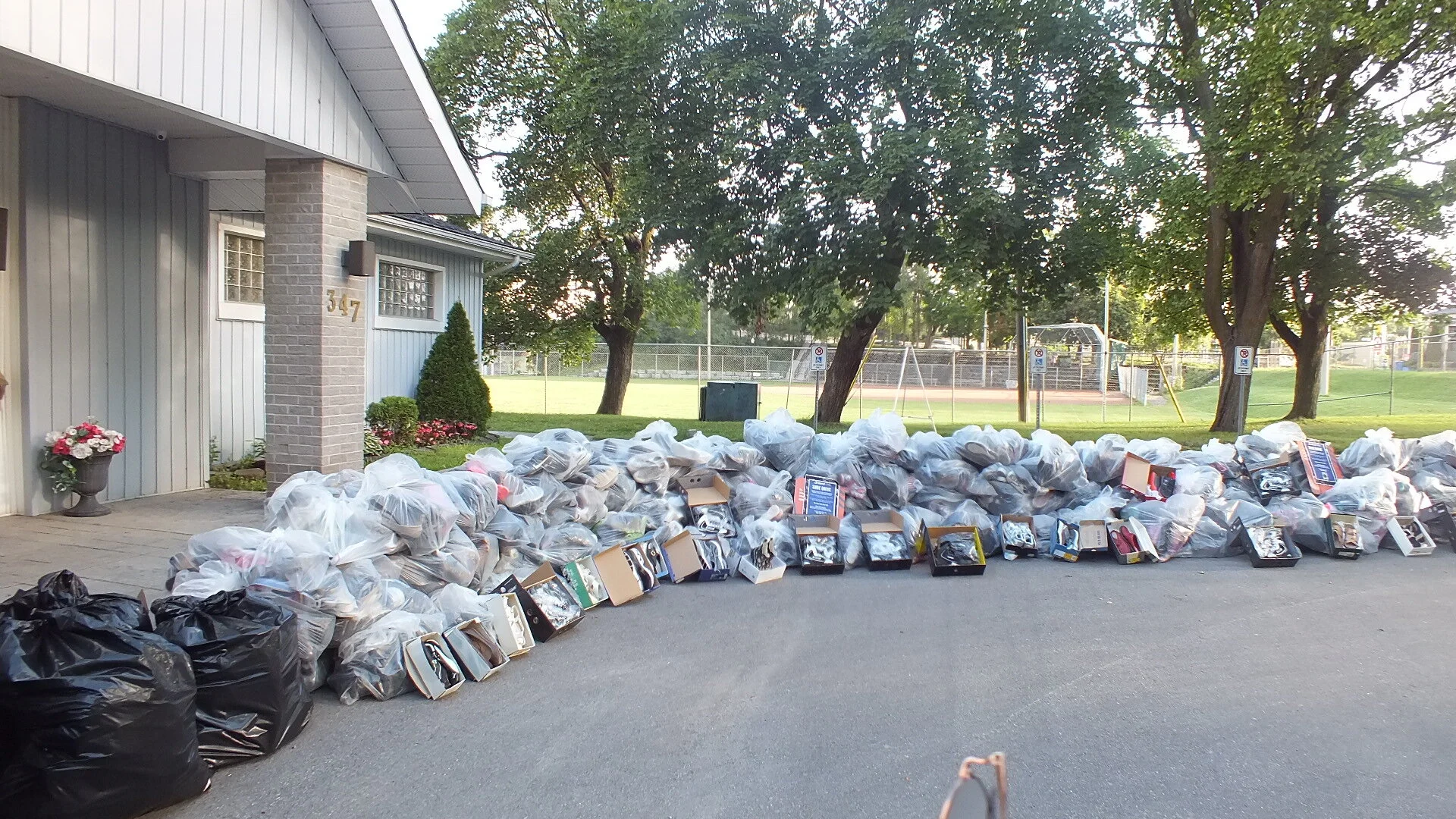 Over 150 garbage bags filled with shoes were donated to the Shoe Drive. Photo Courtesy Of Peterborough Lions Club.