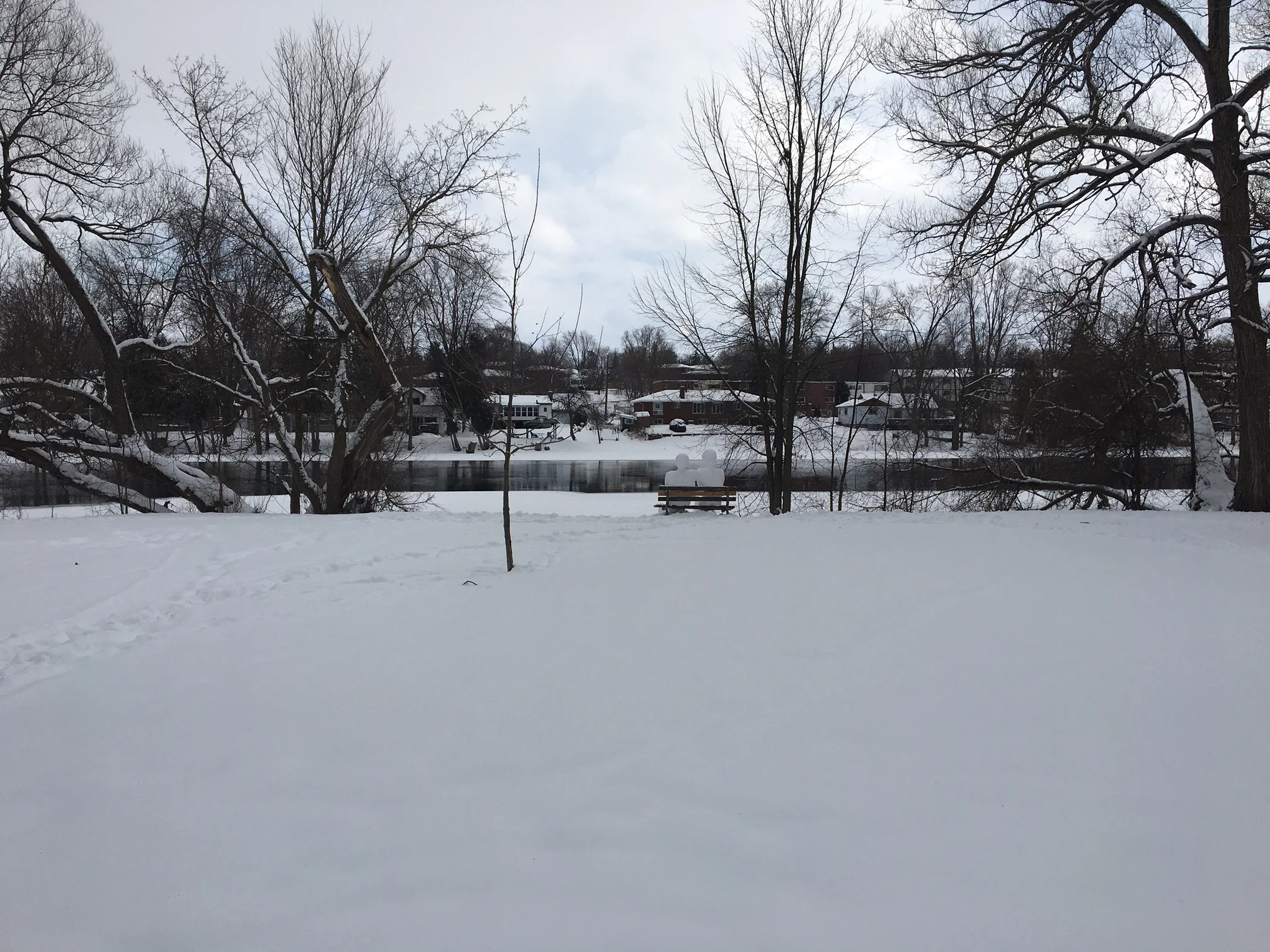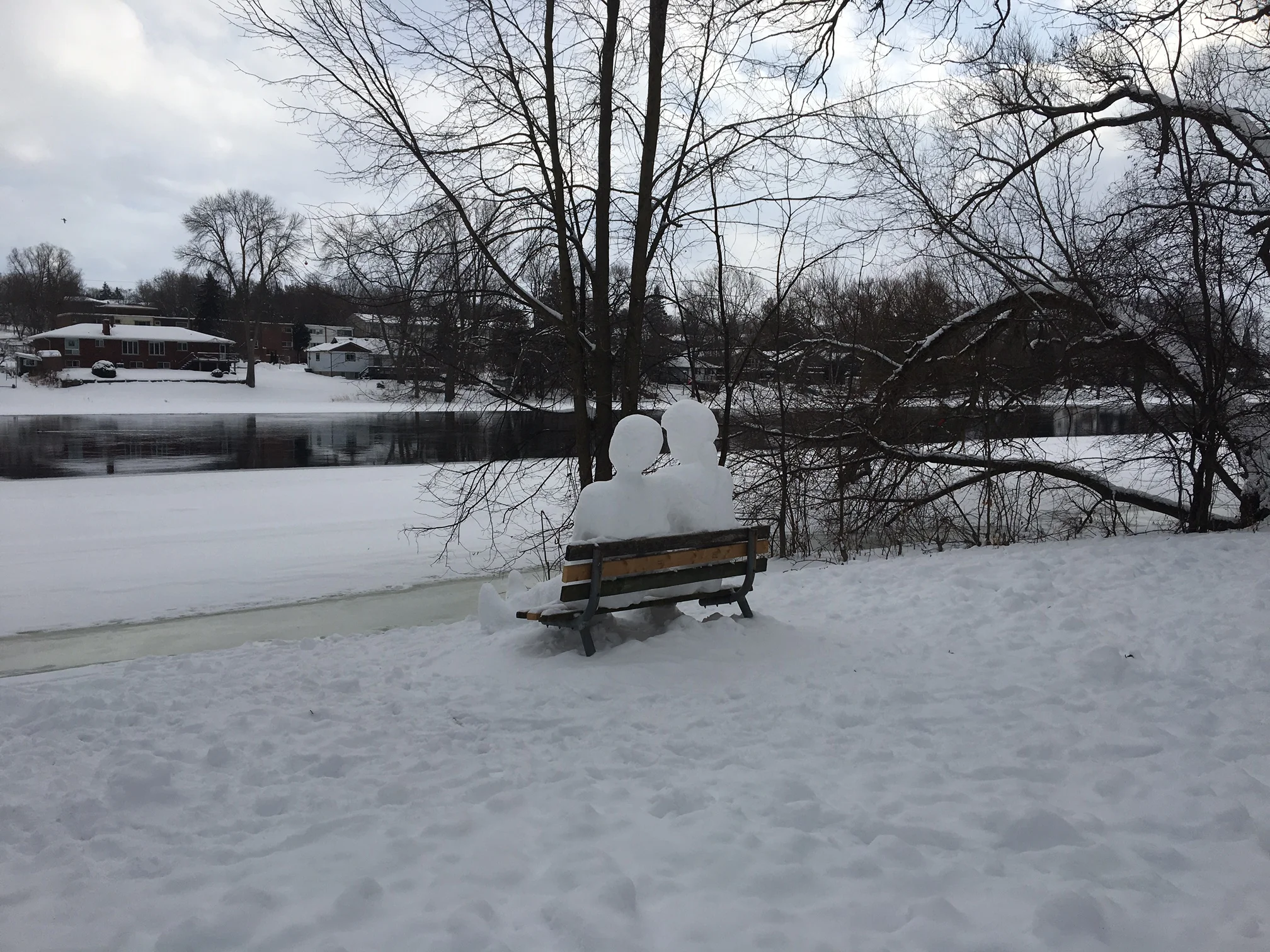Just A Snow Couple On A Bench Overlooking The Otonabee River