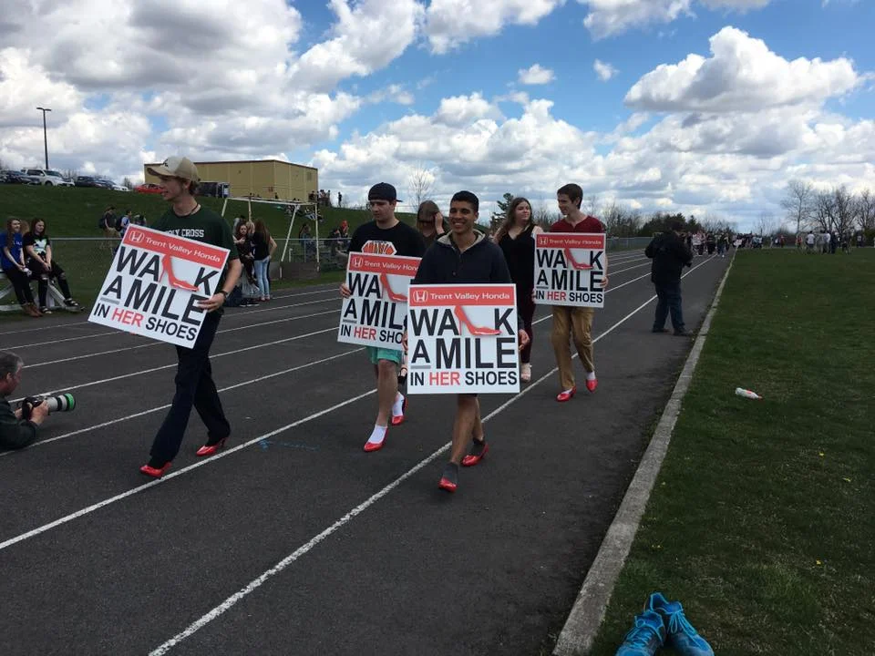 More than 50 staff and students participated, walking four laps on the school track in heels.