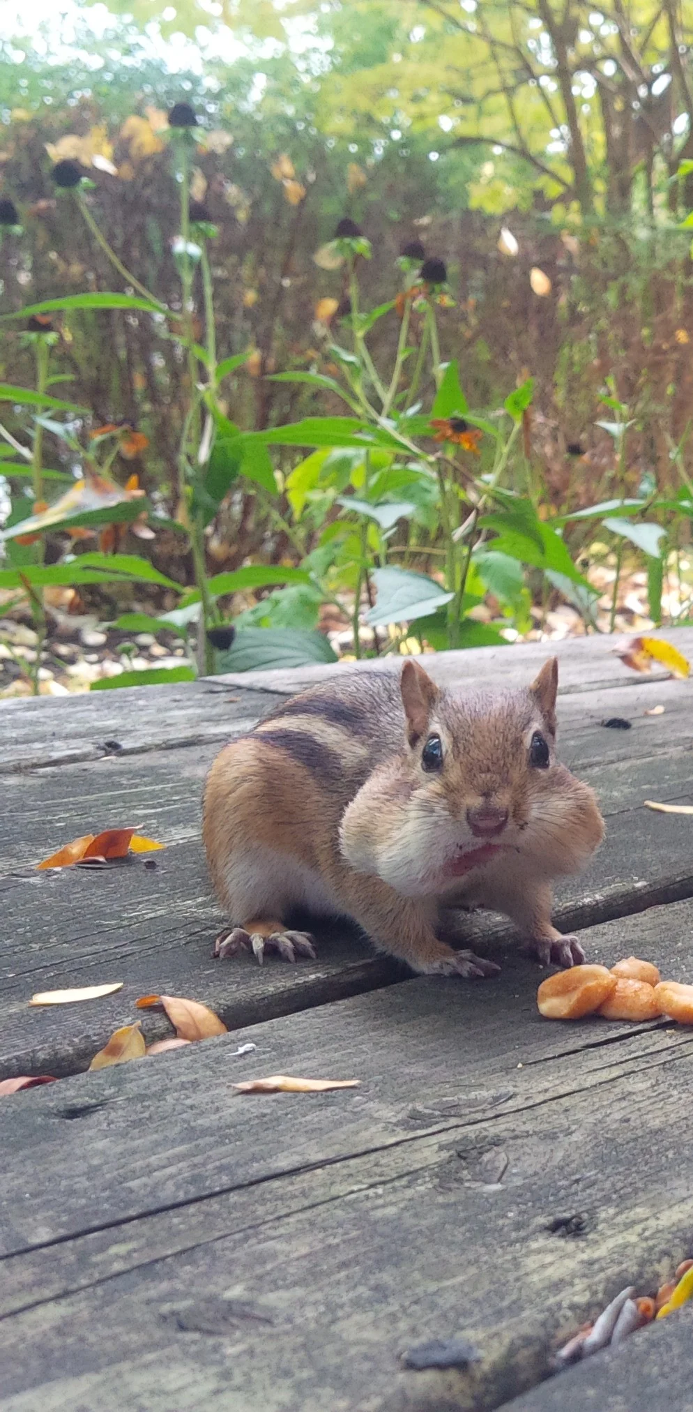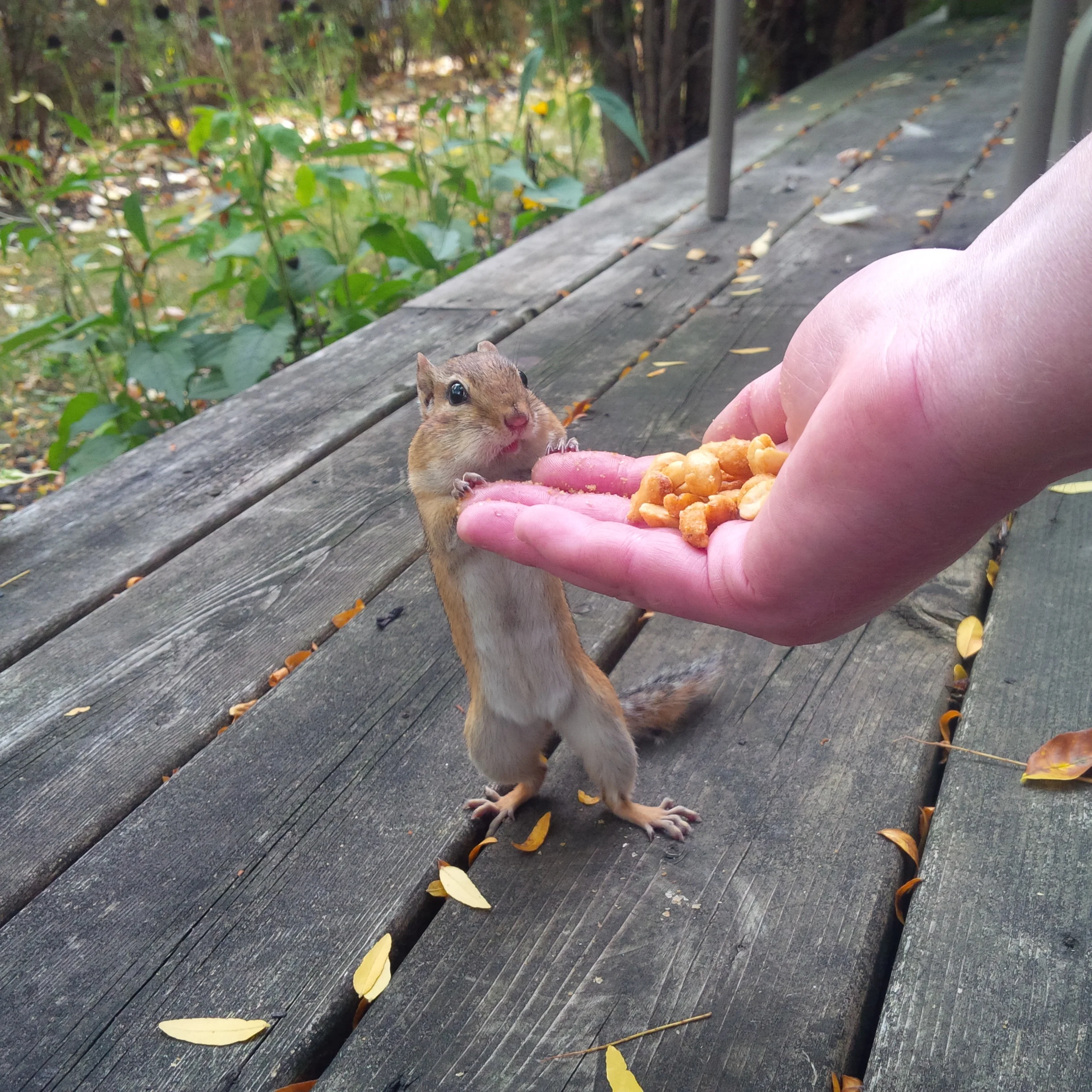 /Our Scott Arnold befriended a chipmunk while he was kicking back on a Friday afternoon with a beer and nuts on the back deck. The chipmunk and Scott became besties. Here are the pictures...