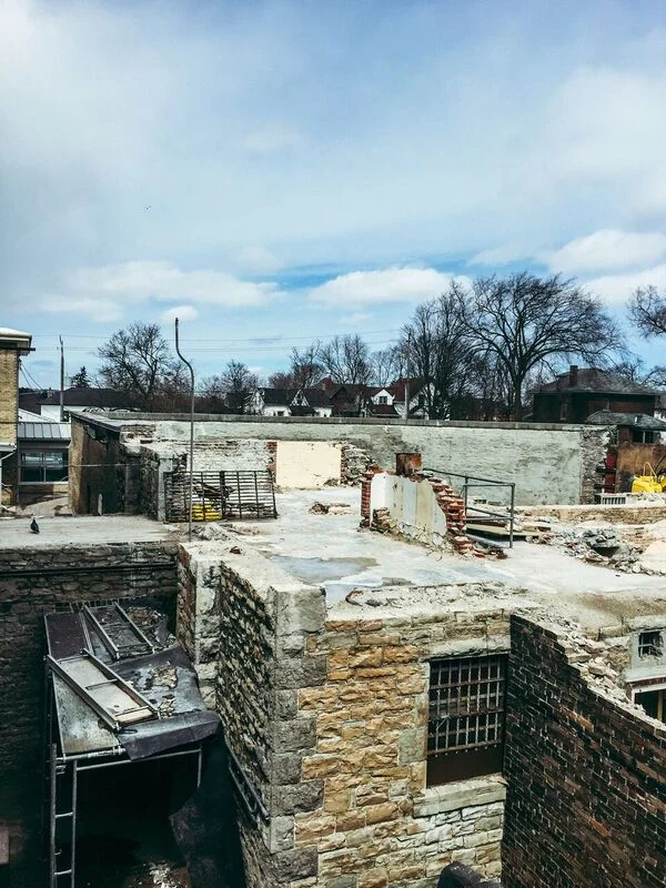 At the top of the stairs, Scott got a much better look at the demo happening. "I was excited to get this view, I love capturing history and exploring historical buildings," he says. "I had never been in that jail, only heard the many stories, so it was pretty surreal—even with it being almost demolished."