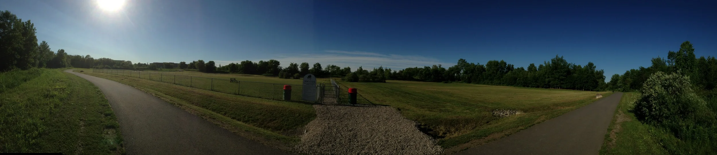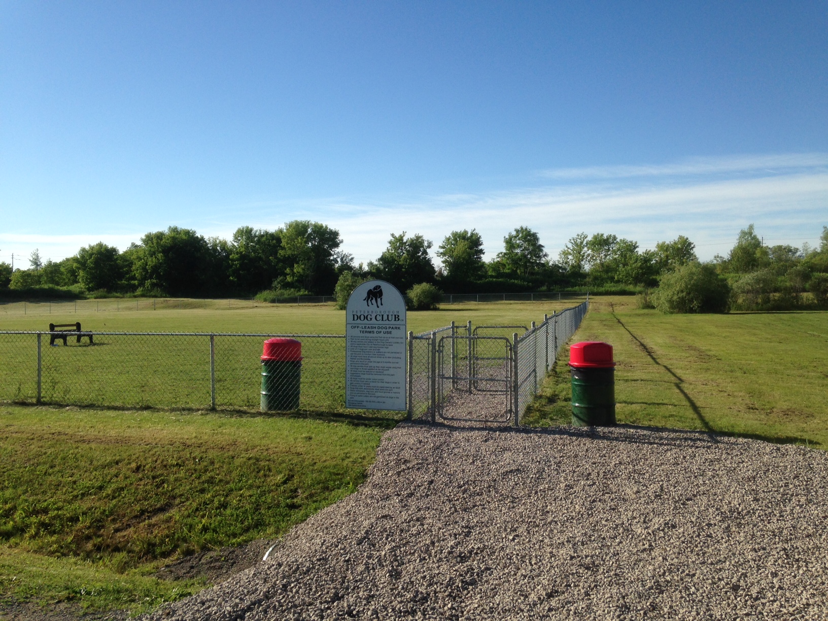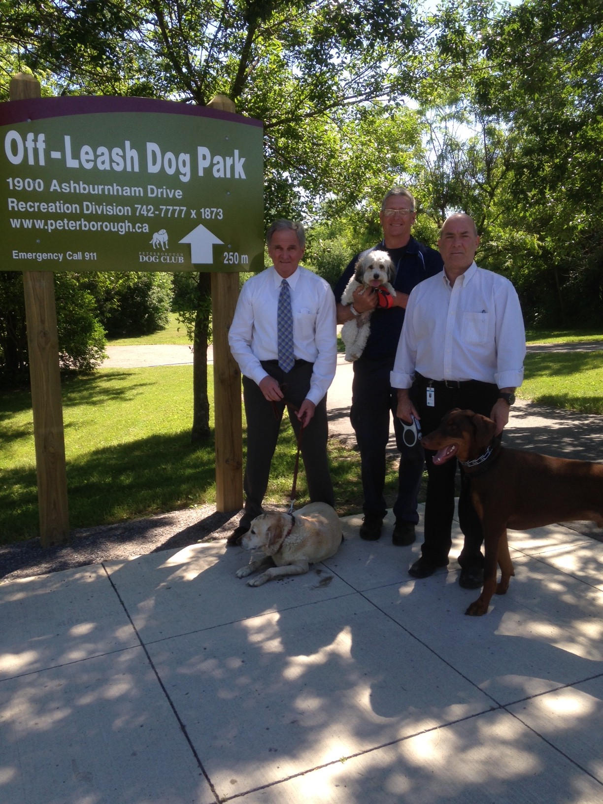 /A new directional sign has been unveiled at Peterborough Dog Park—located on Ashburnham Drive on the East side at the entrance to Farmcrest Park by the pedestrian cross walk. After a significant fundraising effort, the dog park opened in March but the installation of the new directional sign will assist users in actually locating the off-leash park. This is a good thing should your dog not be able to sniff it out. Here's pictures of the directional sign and the dog park...