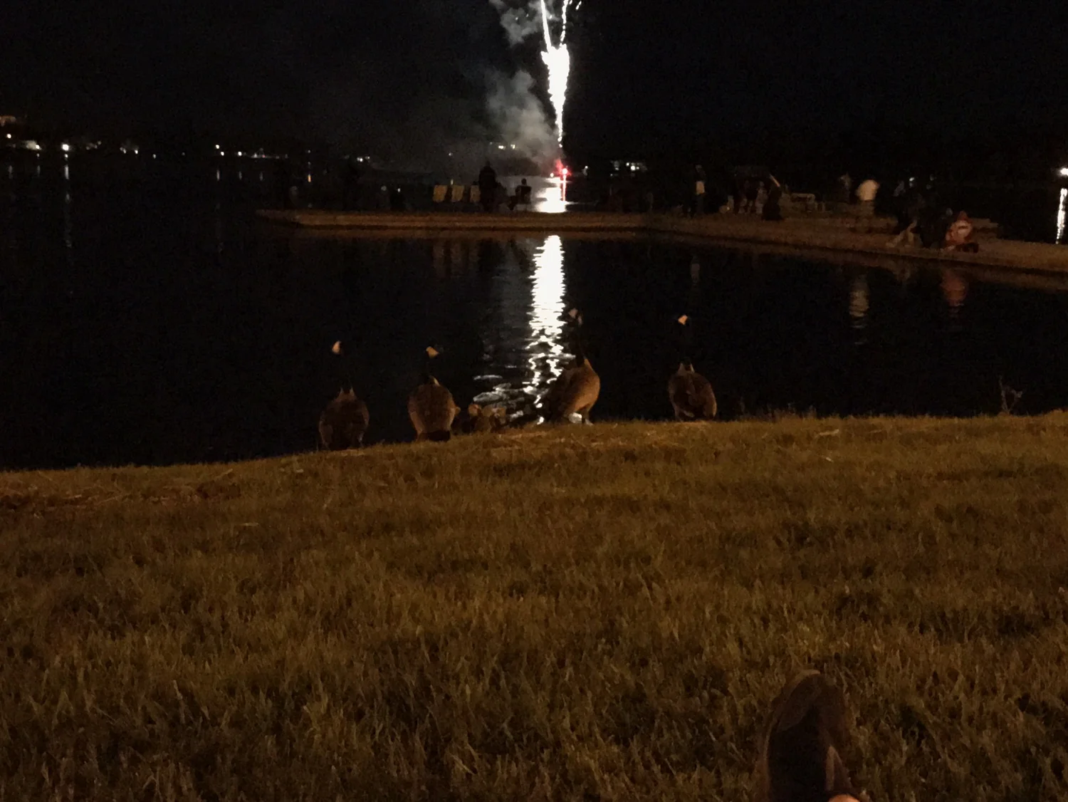PTBOCanada.com Snapchat reporter Jeremy Biden and his wife, Debbie, were at Del Crary Park catching the fireworks over Little Lake on Saturday night, and Jeremy caught these great photos of a family of geese along the banks of the water checking out the action.