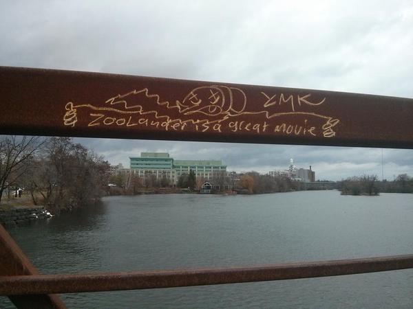 Someone in Peterborough really likes Zoolander. Electric City Live's Gabe Pollock snapped this pic walking on the rail bridge. Oh, and beauty backdrop.