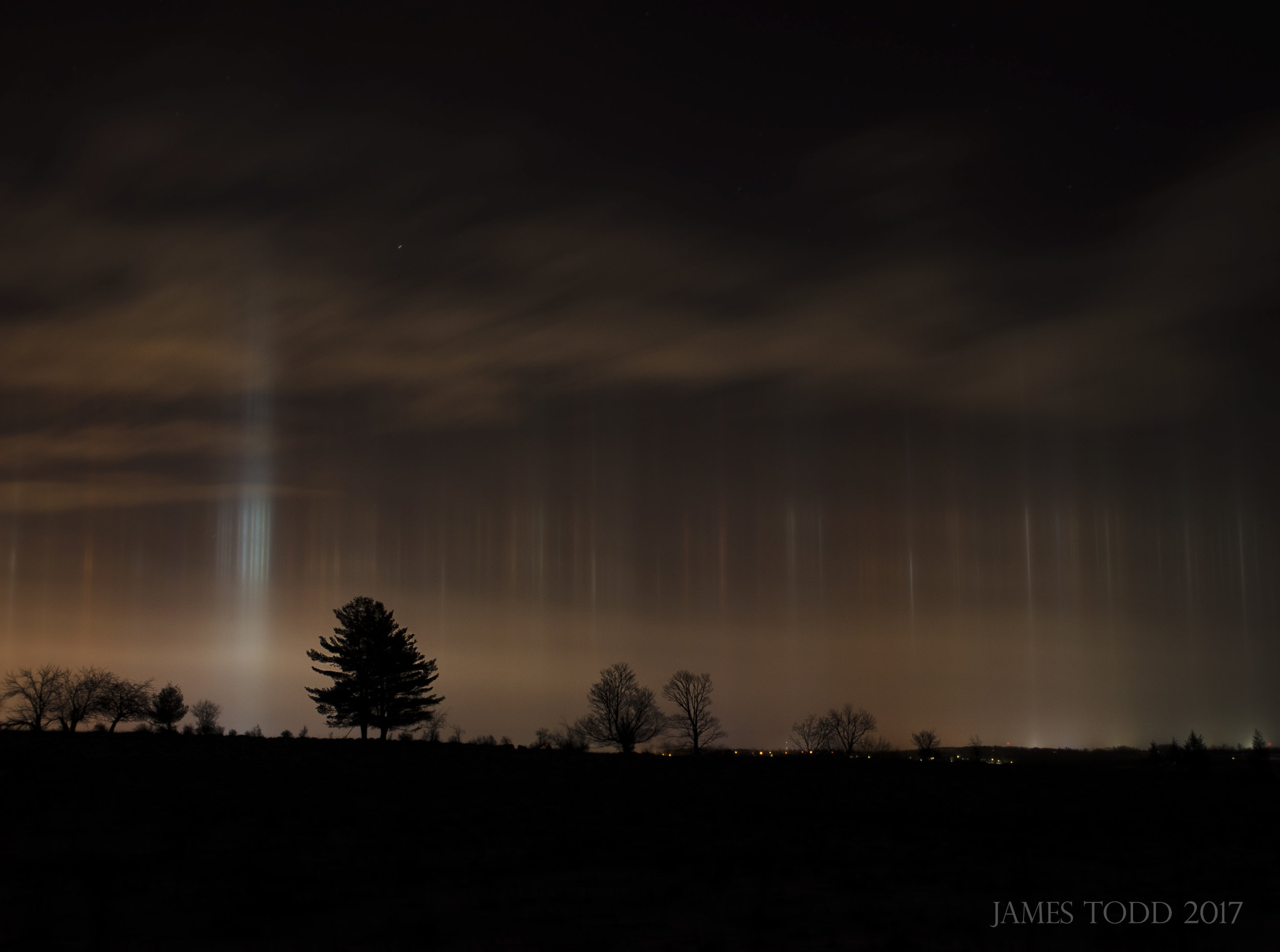 /James Todd captured this stunning image of light pillars on Sunday night (January 29th). "I took the picture just off Lily Lake Road, facing towards the city," he tells PTBOCanada.