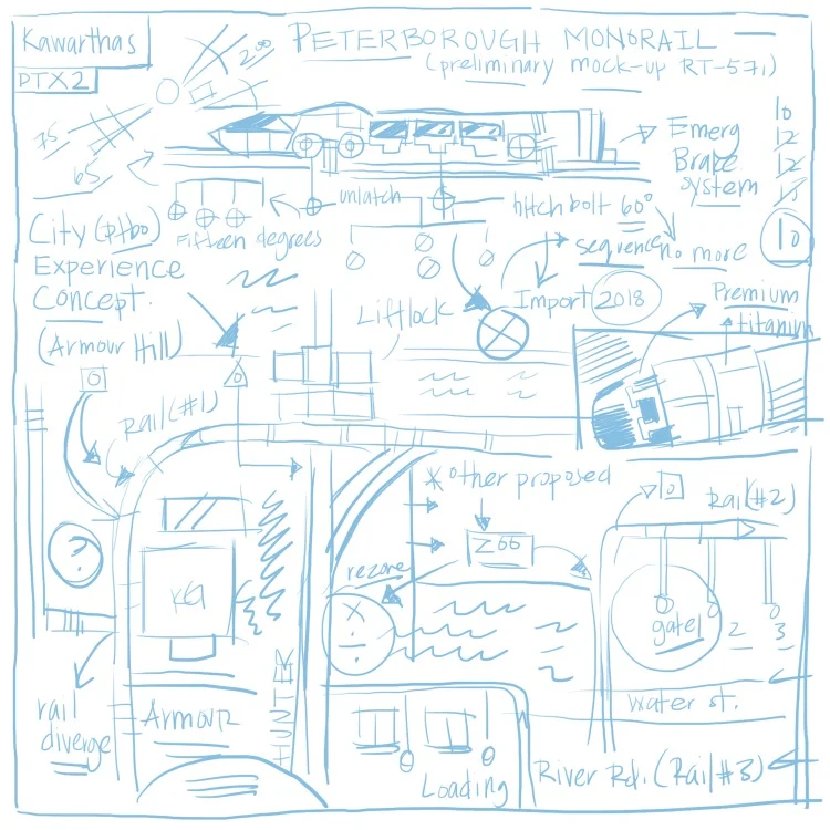 The monorail, called "The PTBO Monorail", would be built to draw even more tourists to this beautiful area, and be the talk of Canada and beyond. The elevated track designed by the team of engineers would stop at tourist attractions like the Lift Lock, Armour Hill, The Canoe Museum, Millennium Park, Jackson Park, Riverview Park & Zoo, Little Lake, the downtown core, River Road bike trails and Lansdowne Place. It would make stops at local hotels to pick up passengers.