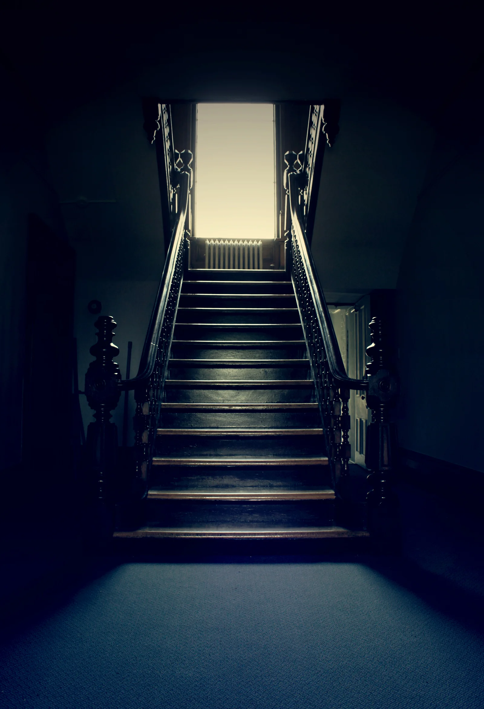 (Photograph was taken in an abandoned farmhouse near Peterborough. In older homes such as this one, you'll find that stairways have shorter risers and more steps compared to newer homes.)