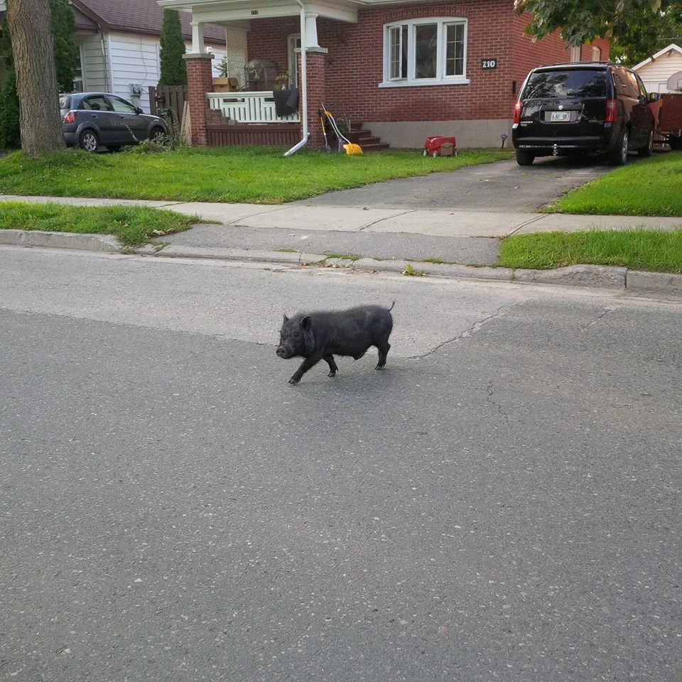 /Peterborough Chamber CEO Stu Harrison spotted a pig crossing the road today (September 9th) on Braidwood Ave. near the Memorial Centre. Why did the pig cross the road? Well we're not sure where it was heading, but it seemed like it owned the street—if not the neighbourhood...