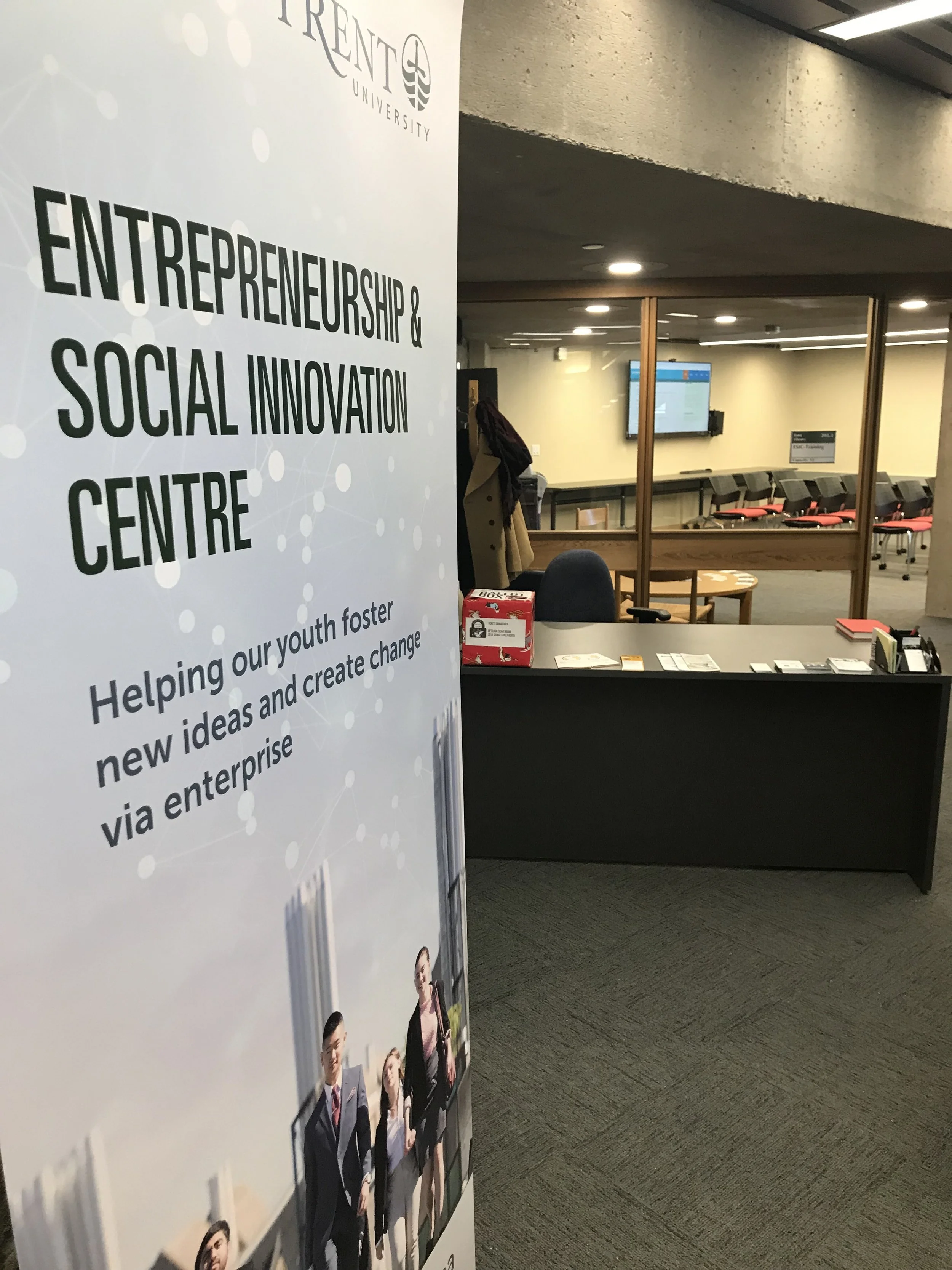/The Innovation Cluster and Trent University held an Open House for the recently launched Entrepreneurship and Social Innovation Centre (ESIC), a meeting hub within Trent’s Bata Library that will foster the development of entrepreneurship culture at Trent University.